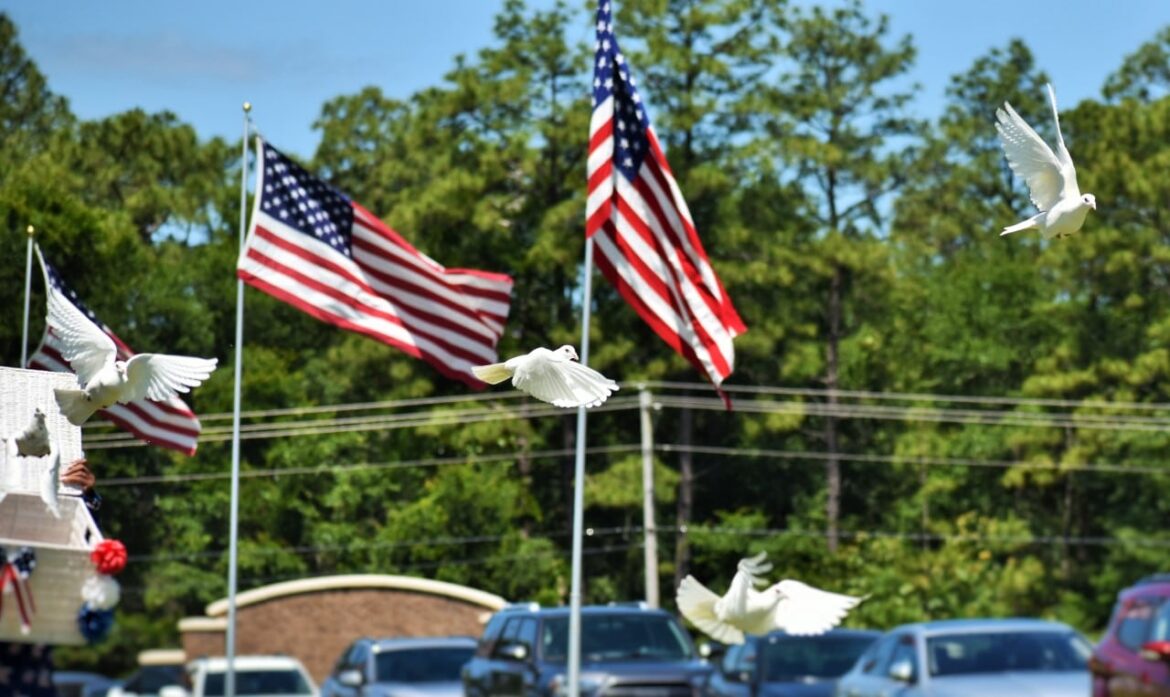 Top Photo: Doves were released during the ADVA Memorial Day ceremony.