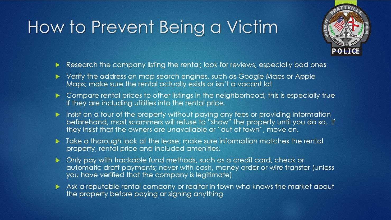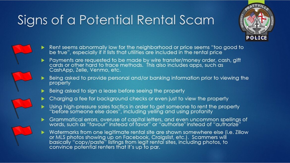 #RentalScams #RedFlags #BeInTheKnow #WatchOutForThese #PPD #OnePrattville