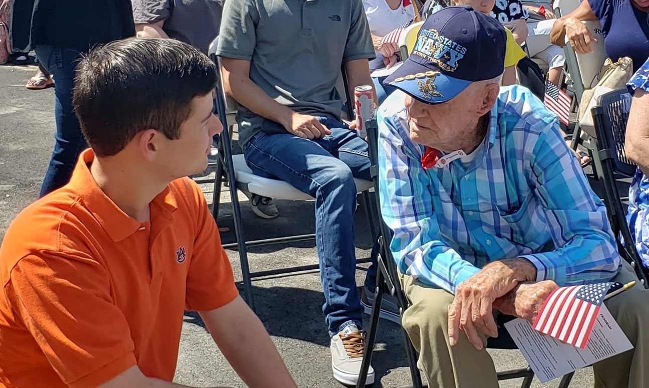 Kelley said that Memorial Day is a day to honor the fallen, but no one has to wait until Veterans Day in November to show support of living veterans. He asked for a show of hands of all veterans present. He then introduced four special guests, all WWII Veterans, in attendance. They were: Eugene Thomas Beasley, James Dozier, Carl Edwards and John L. Zent.