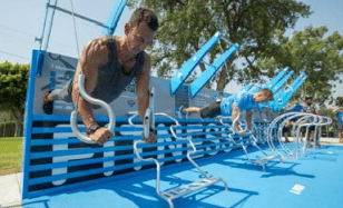 The new Fitness Court is an open-air wellness center that allows users to leverage their own body weight to get