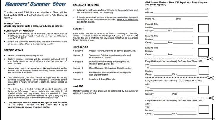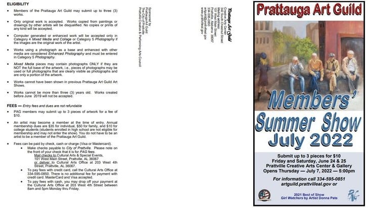 For more information about the PAG Summer Members’ Show or other PAG programs, contact the Cultural Arts Office at 334-595-0850 or visit artguild.prattvilleal.gov.