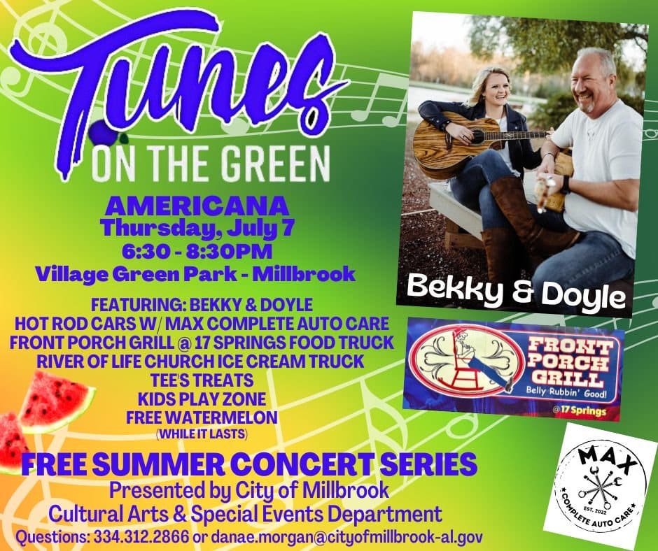 From the City of Millbrook – Make plans to join us for the concert of the season! Yep, it’s going to be HOT, but we’ve figured it out by putting a stage under the shade trees at the north end of Village Green Park which will be much more comfortable for everyone.  Our Hometown Locals Doyle Campbell and his talented wife Bekky are the entertainment.