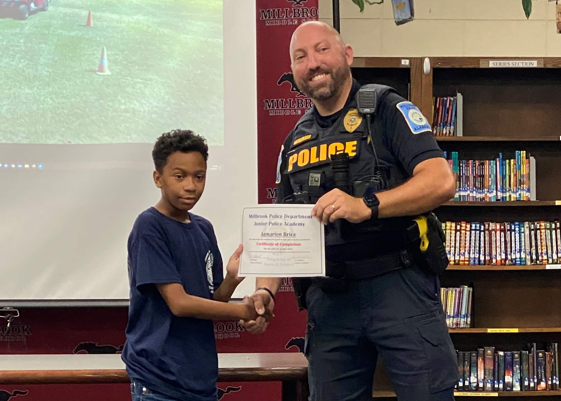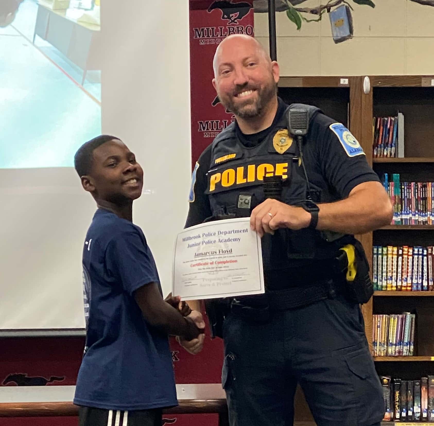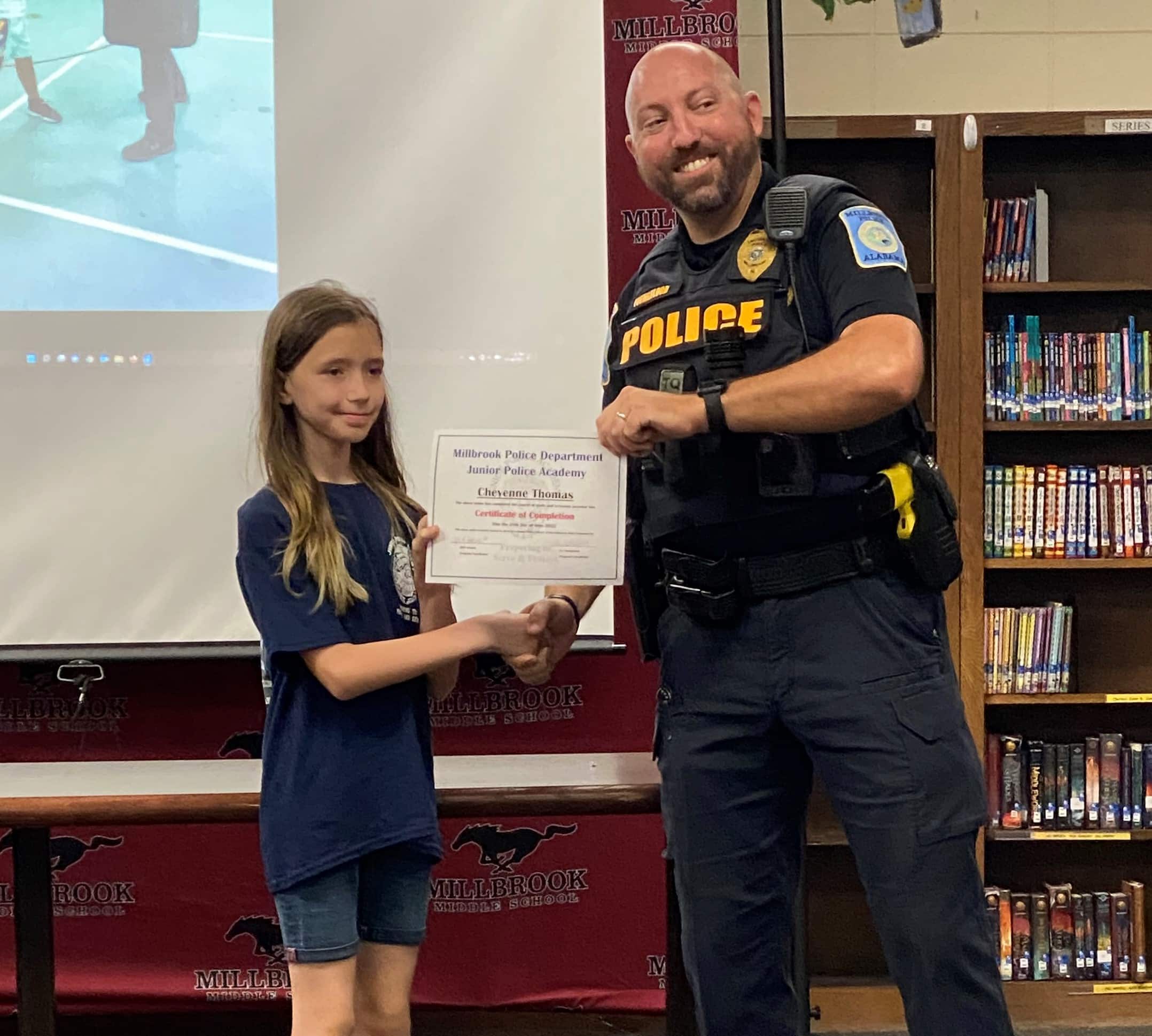 The Millbrook Junior Police Academy held two full weeks of camps at Millbrook Middle School from June 20th thru 24th and from June 27th thru July 1st. A special ceremony took place on Fridays of both weeks to recognize all of the graduates. A total of 54 cadets graduated from the Academy. All cadets experienced a week of engaging, hands-on learning, about law enforcement. They learned the values of honesty, integrity, and respect of a law enforcement officer.