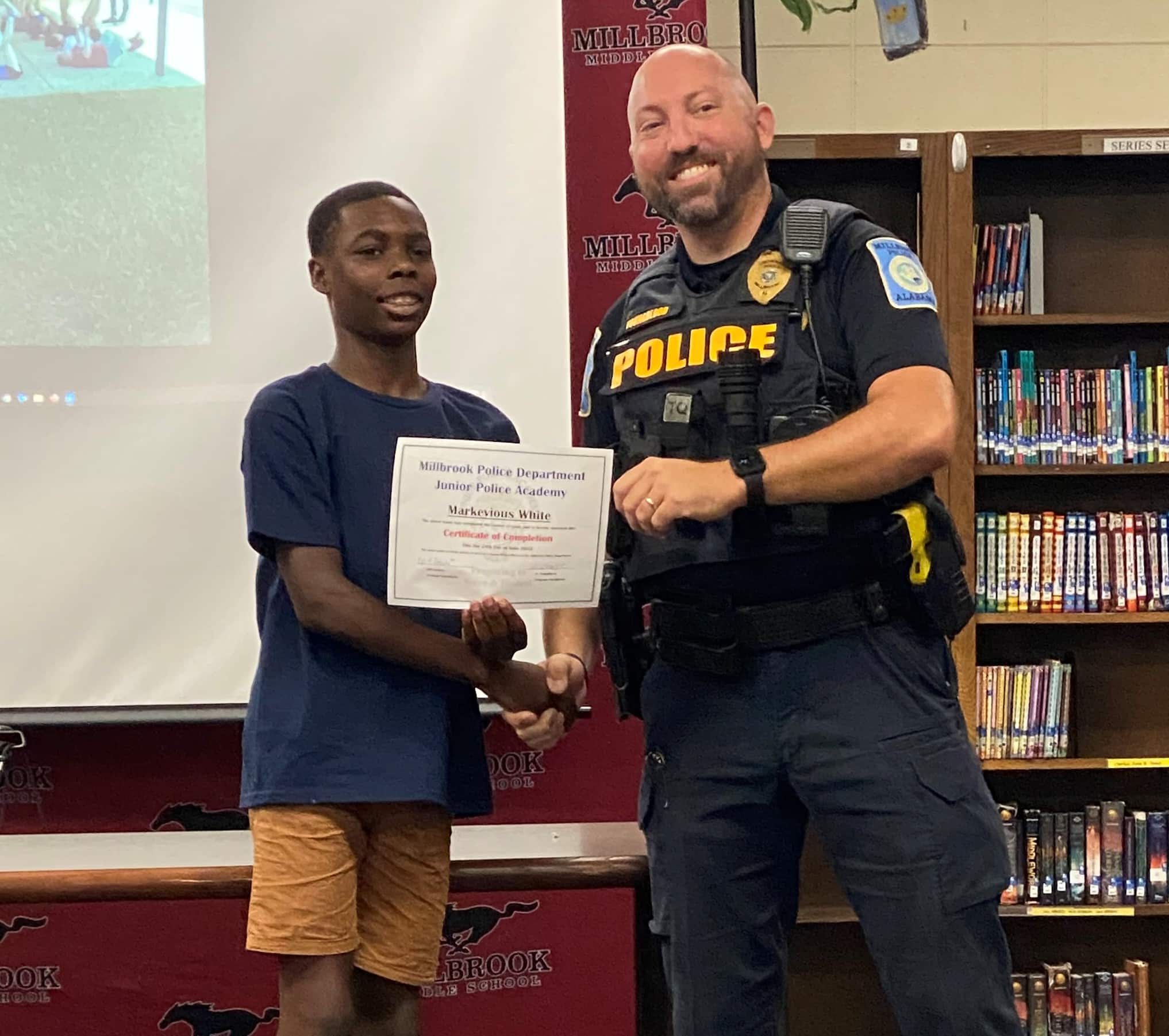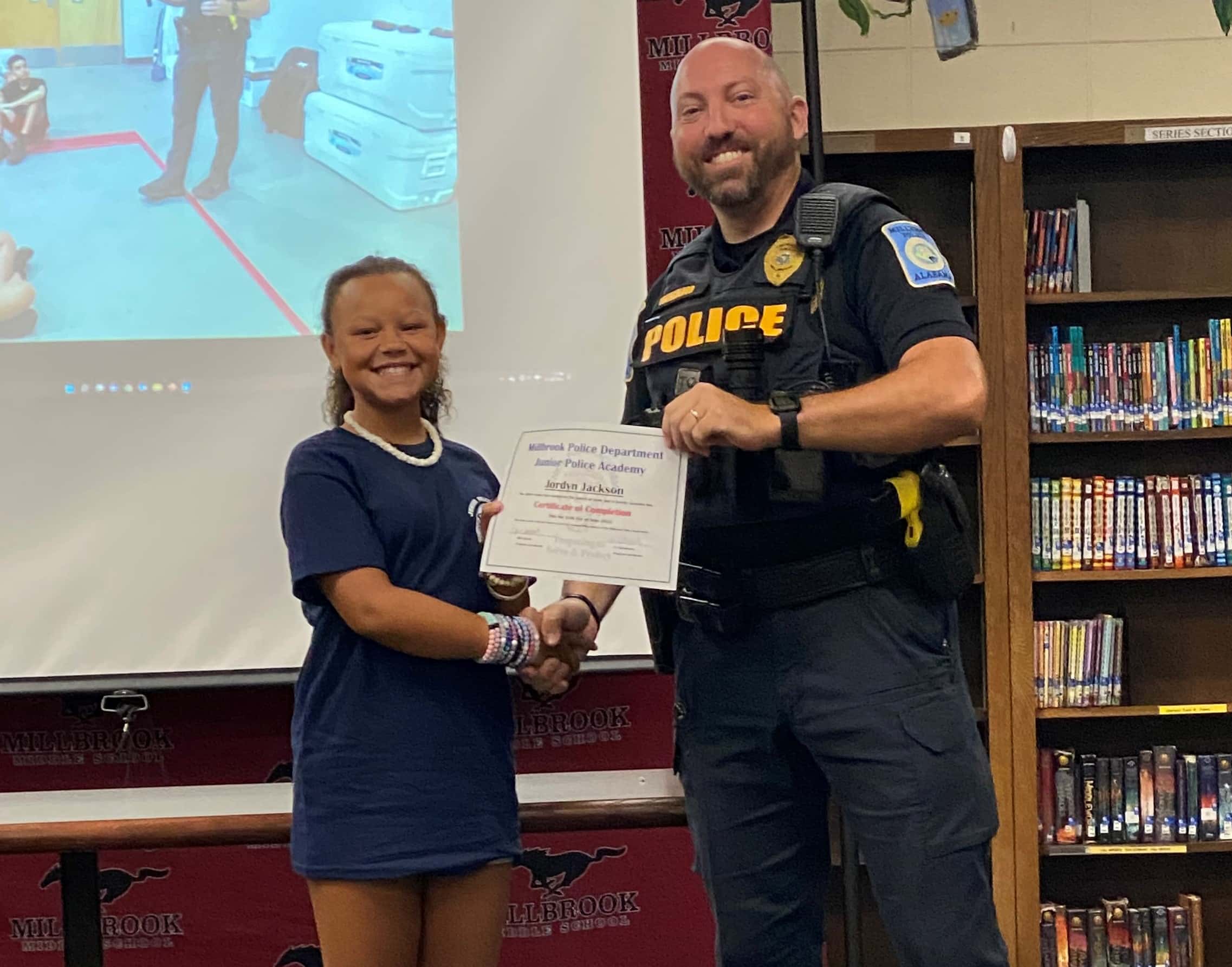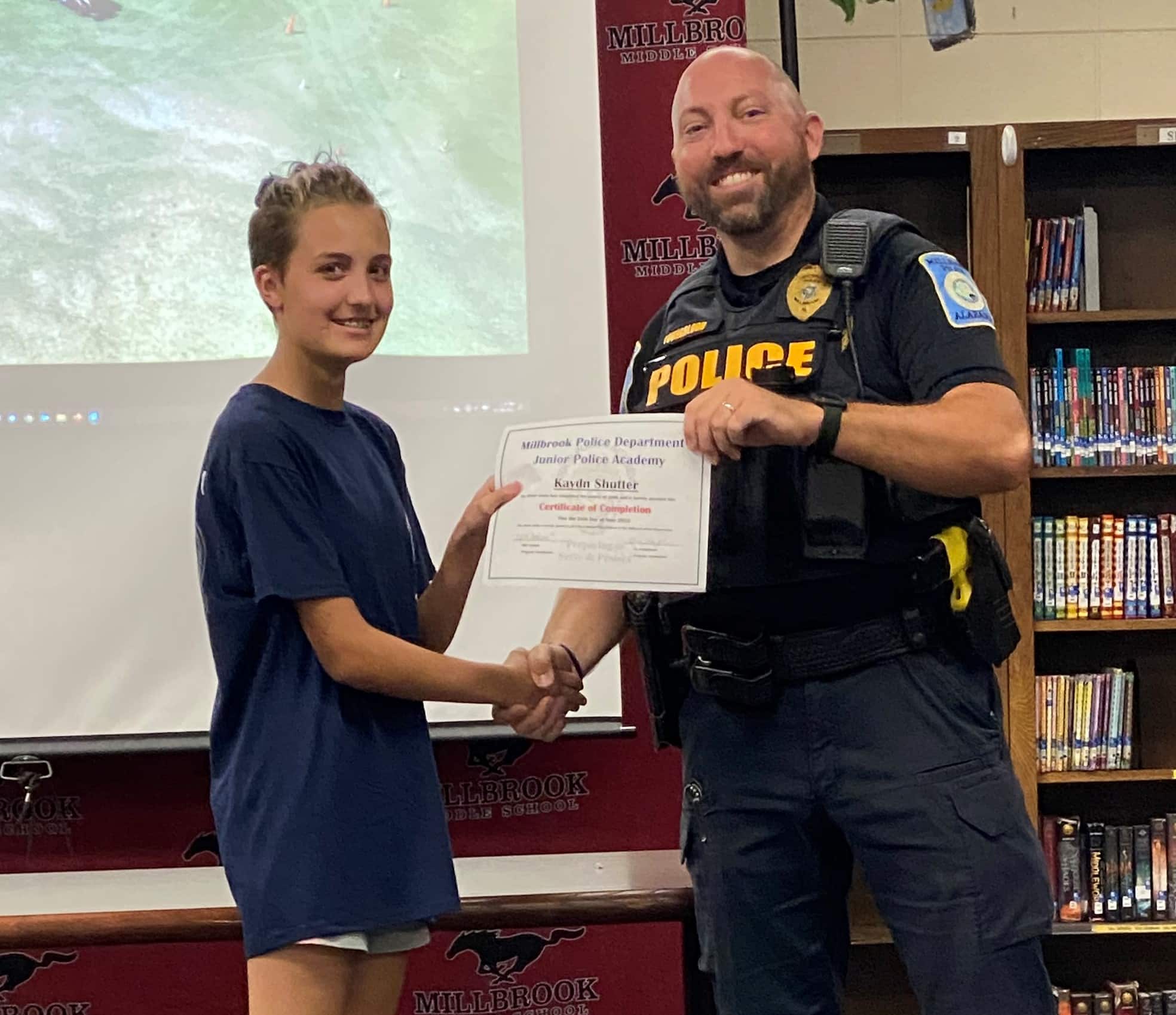 The Millbrook Junior Police Academy held two full weeks of camps at Millbrook Middle School from June 20th thru 24th and from June 27th thru July 1st. A special ceremony took place on Fridays of both weeks to recognize all of the graduates. A total of 54 cadets graduated from the Academy. All cadets experienced a week of engaging, hands-on learning, about law enforcement. They learned the values of honesty, integrity, and respect of a law enforcement officer.