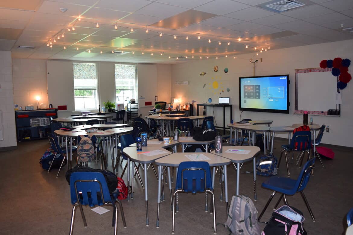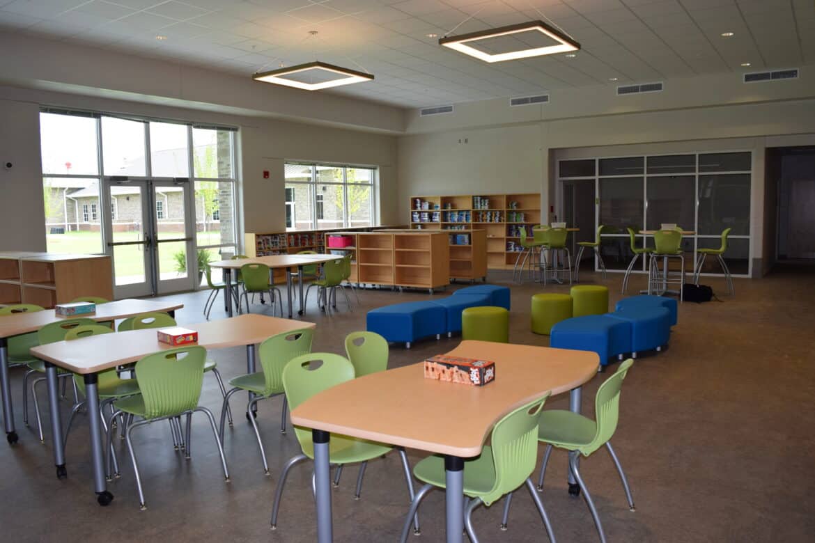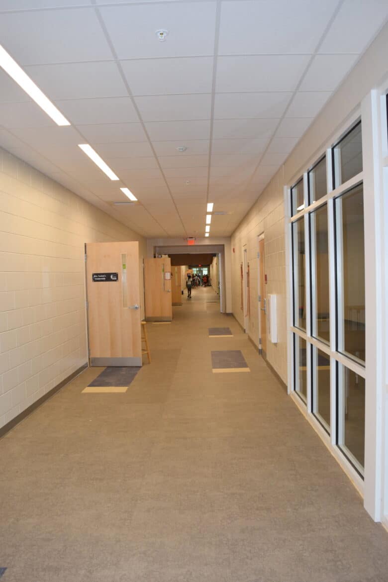 Grades 5-8 will enjoy state of the art touch screen classroom monitors which will greatly enhance the learning experience. Desks can be used individually or put together to create circular learning stations. The lunchroom will have café type seating and the new gym is a work of art.