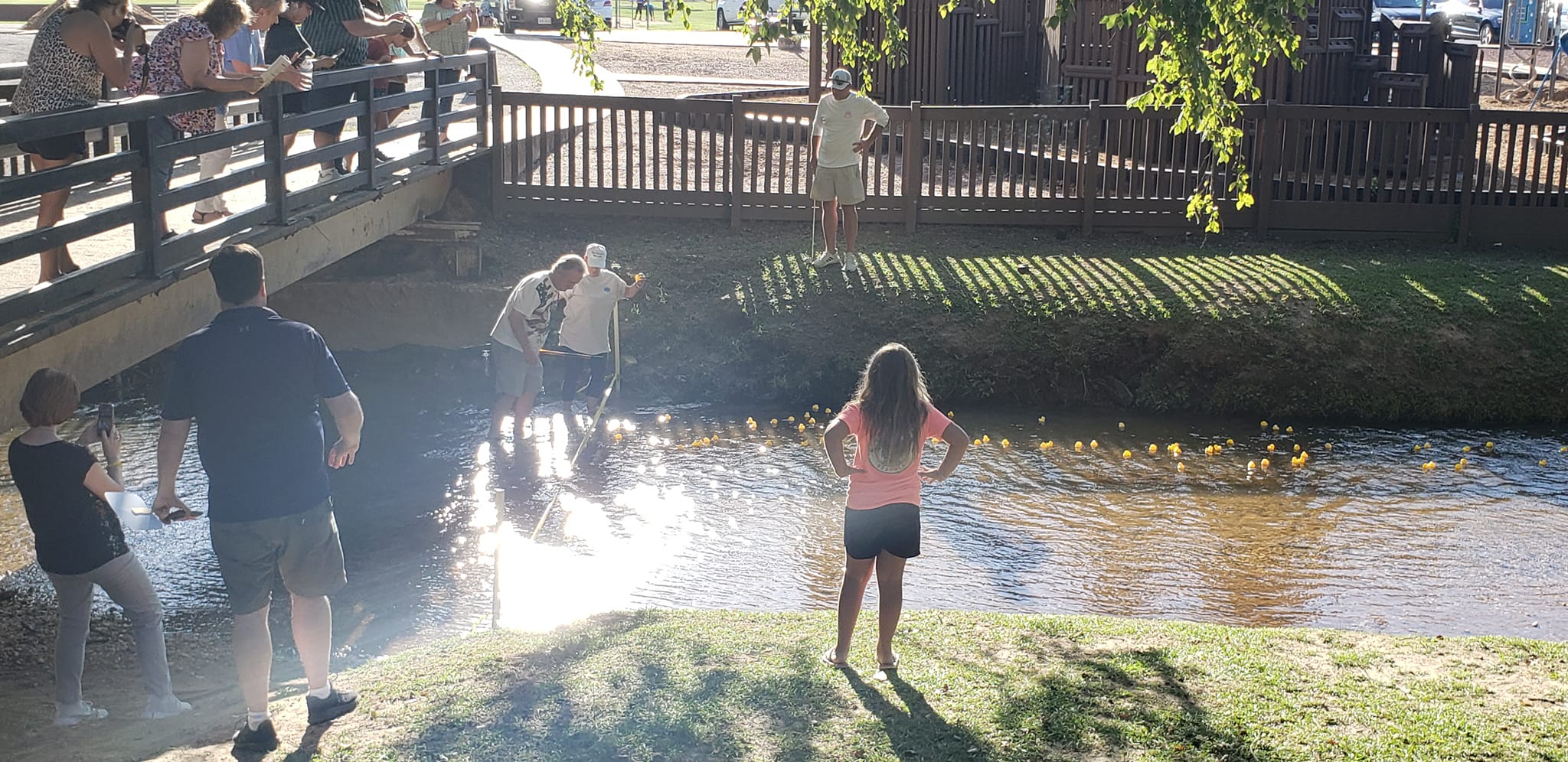 Aside from club members, Scott Davis and the Parks and Recreation Department had a big hand in setting up the course and chasing after wayward ducks. Parks and Rec also put barriers along the short course to keep the ducks from getting trapped along the way. The race was from one pedestrian bridge to the other.