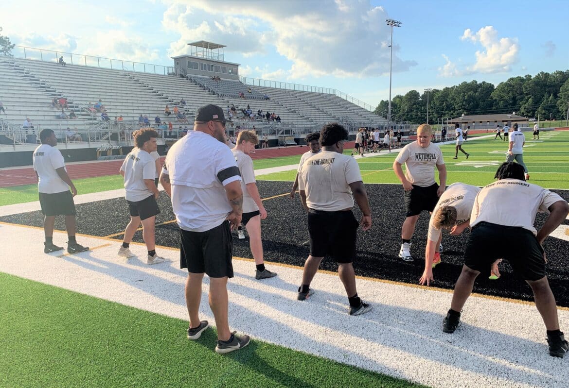 That energy was visible on Friday, August 12, when the team traveled to the City of Wetumpka Sport Complex Stadium to go over pregame warmups and drills.