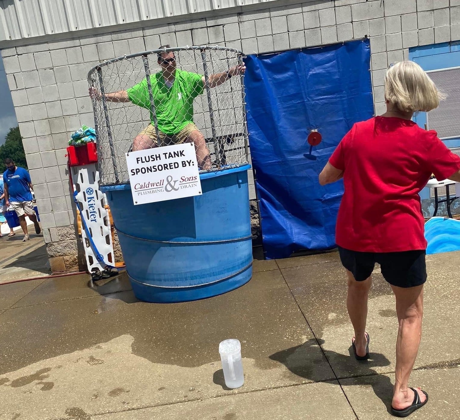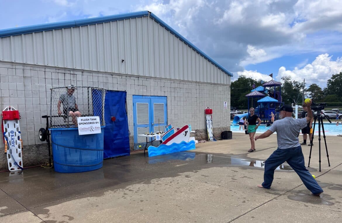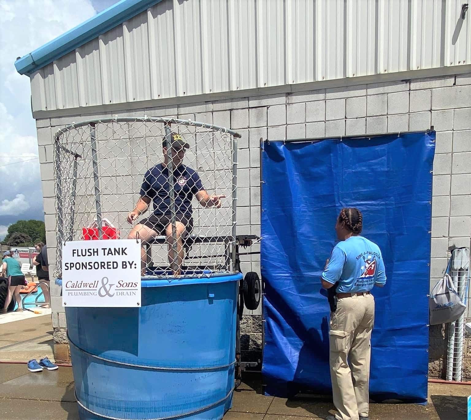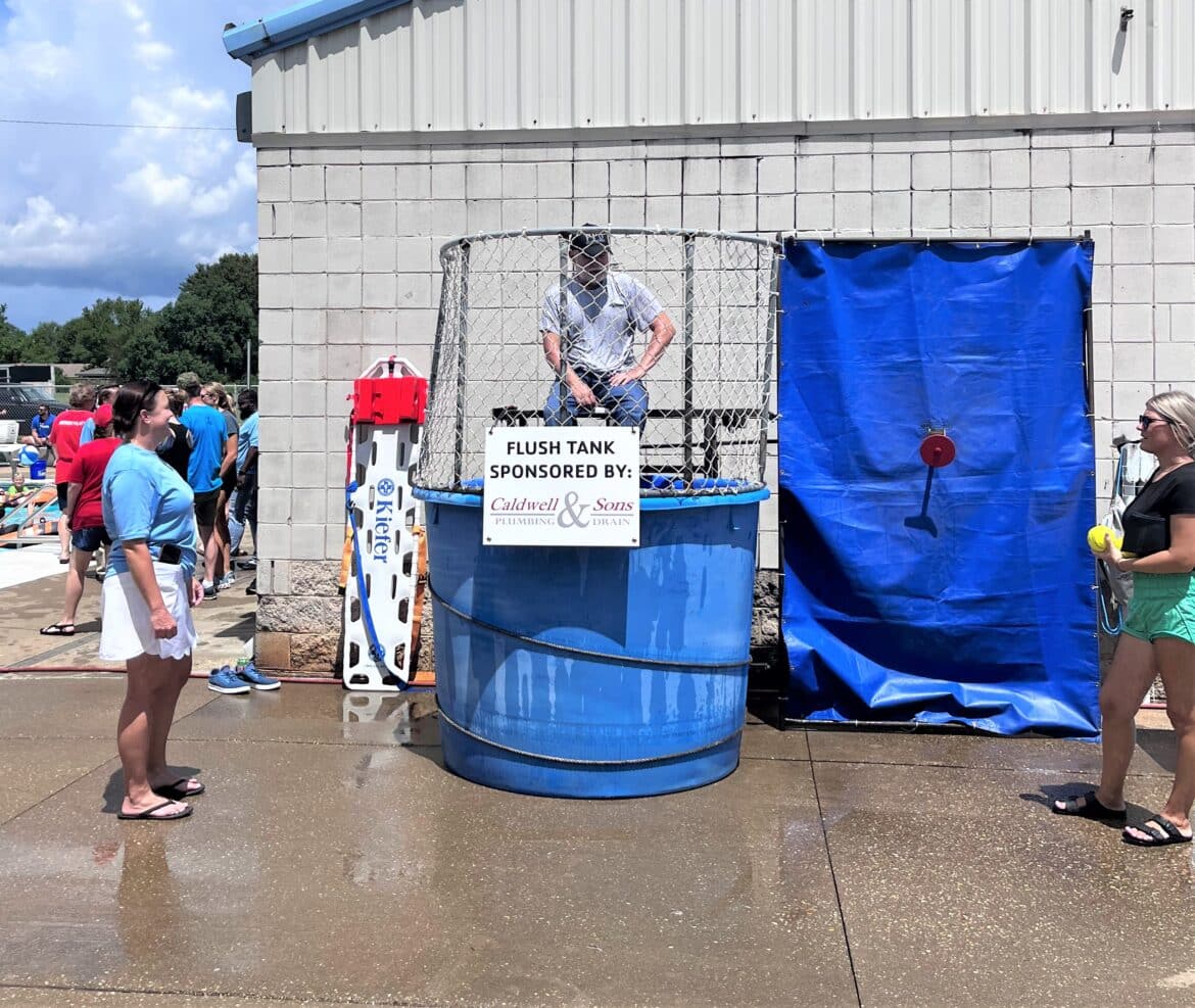 There is also a dunk tank, lovingly called the “Flush Tank” sponsored by Caldwell and Sons, where Community Leaders sit for 20 minutes each to allow citizens to throw balls to flush them into the tank. The member that raises the most funds receive the coveted “Golden Plunger Award.” For $20 you received three chances to knock your target into the tank.