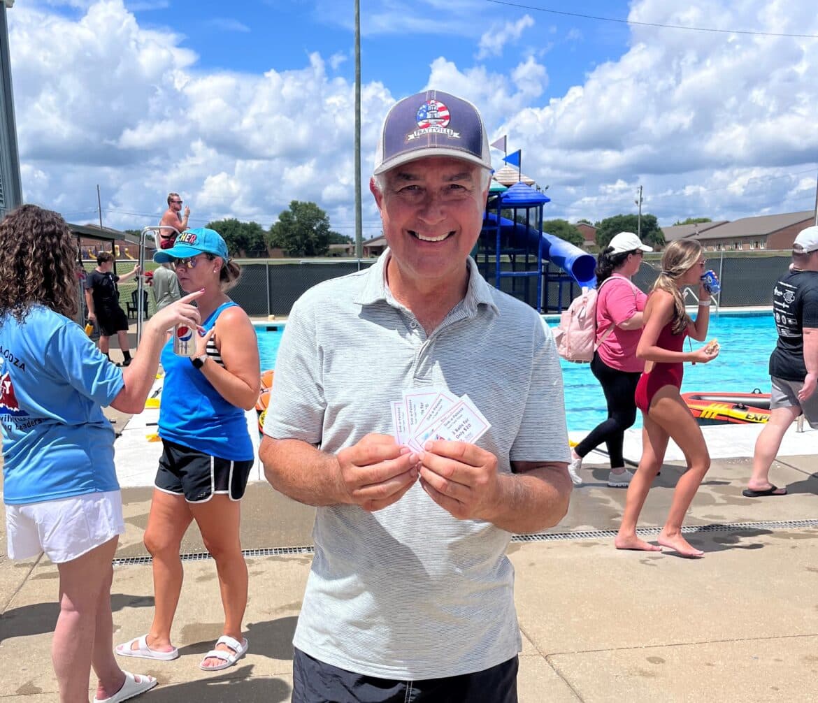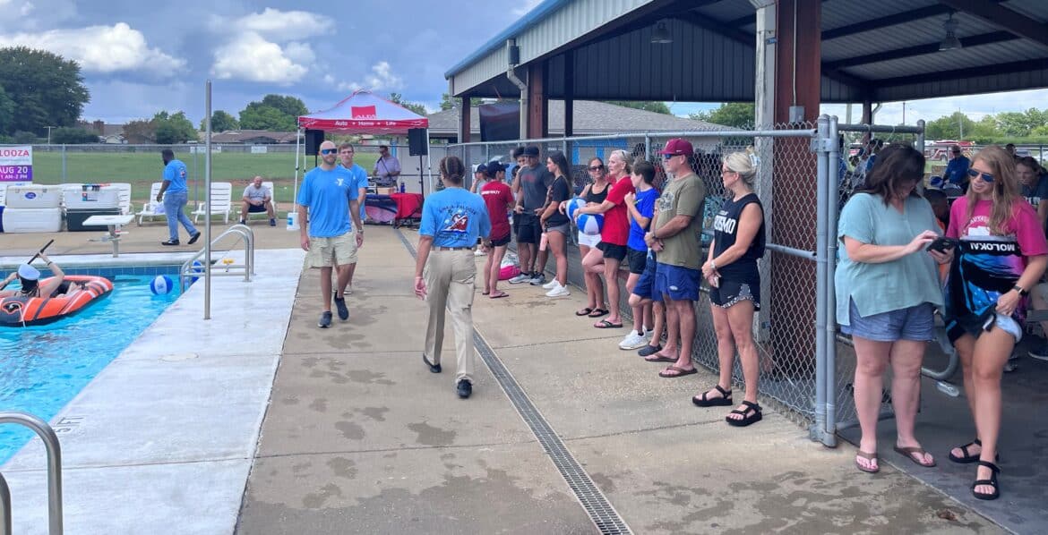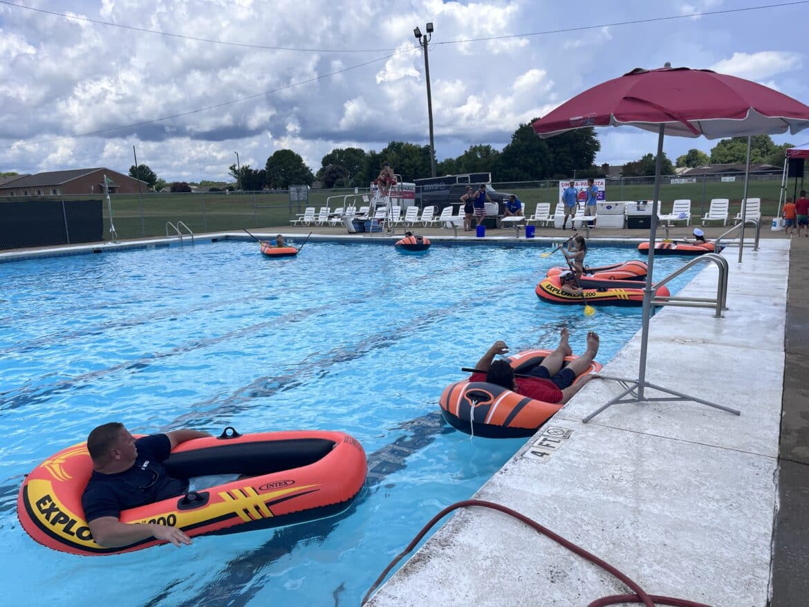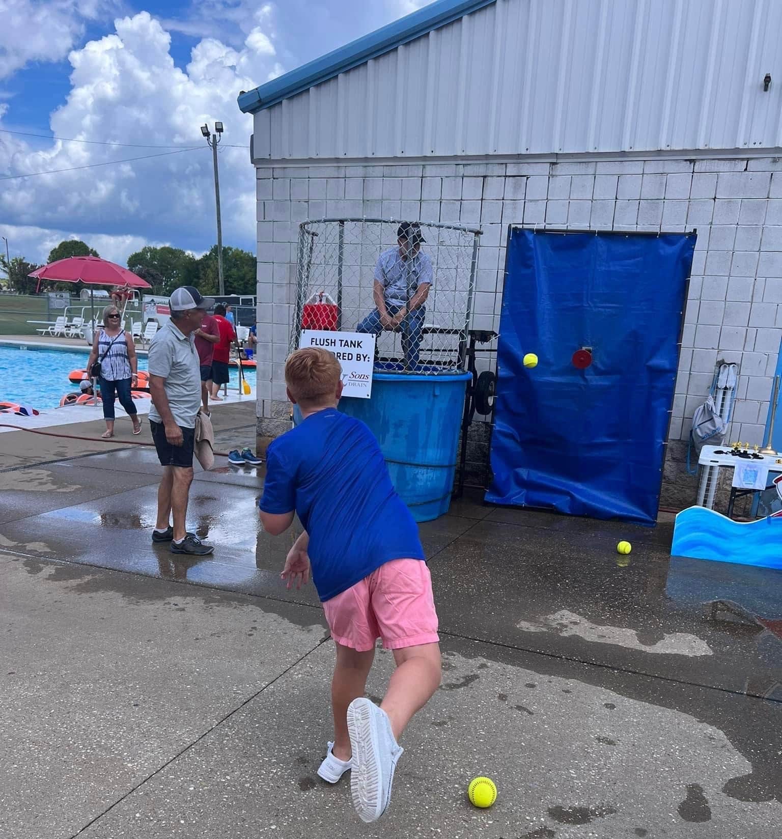 David Lewis, Keith Cantrell, Kyle Shirley, PFD Deputy Chief Josh Bingham, PPD Chief Mark Thompson, Mayor Bill Gillespie and more participated in the flush tank. One of the highlights of the event was when Mayor Gillespie bought 15 Flush Tank tickets and passed them out to get people to knock Police Chief Mark Thompson in the tank….over and over again.