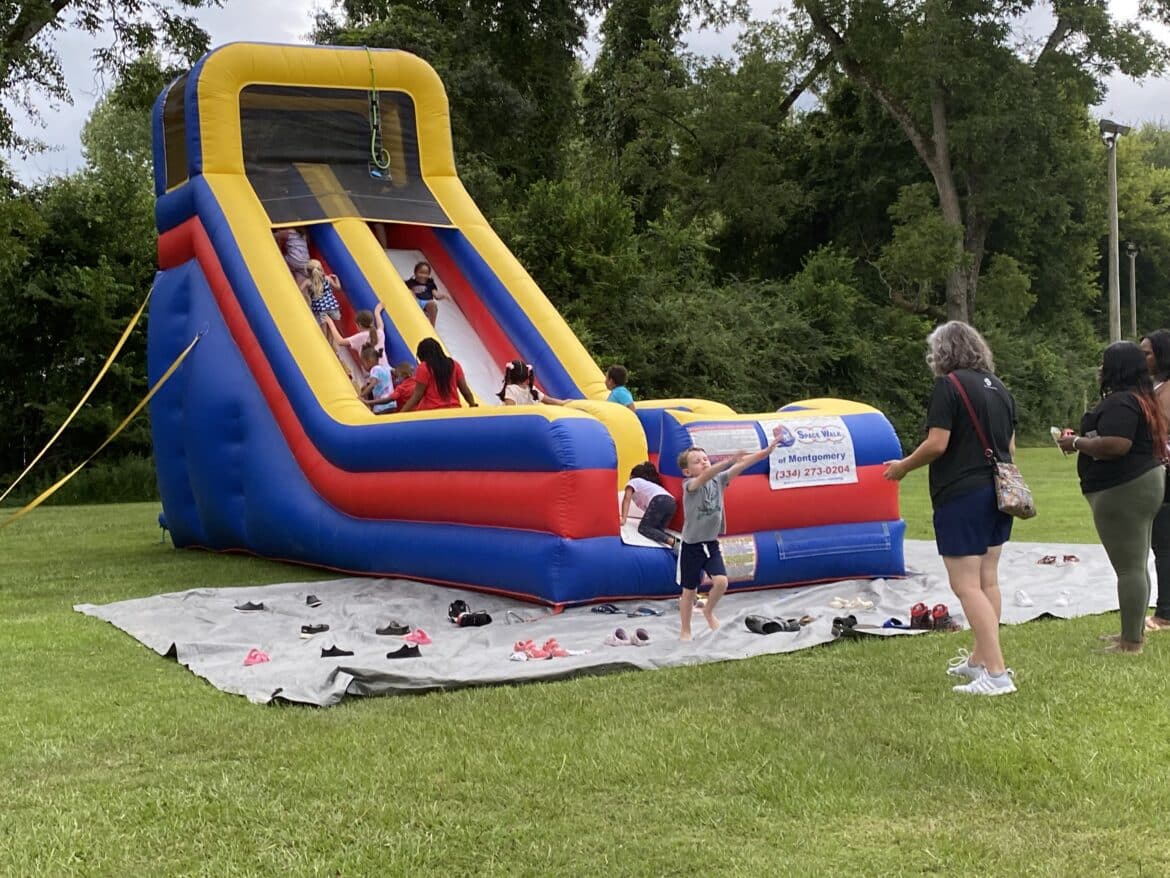 “I am thankful for everyone that came out this evening for our Back to School Bash. It is good to get together as a community. Thank you to the Millbrook Baptist folks that provided cookies, help setup, cook and clean up. Special thanks to Darrell Jennings for sharing the Gospel through art. Thanks to our friends at Kingdom Dough for providing snow cones for everyone. I also would like to thank Space Walk of Montgomery for providing the giant slide,” said Mike Ingram, Pastor for Millbrook Baptist Church.
