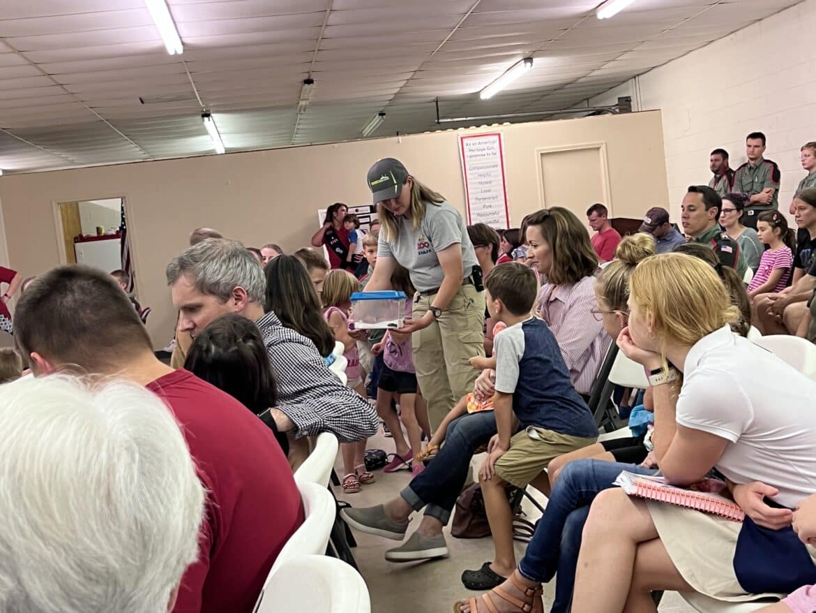 The American Heritage Girls Troop AL0125 along with the Trail Life USA Troop hosted an informational meeting on August 23 at Millbrook Presbyterian Church. This kickoff event set the new troop year off with a bang by hosting the Montgomery Zoo’s Educational Department and had attendees learn more about the Animals of the Bible.