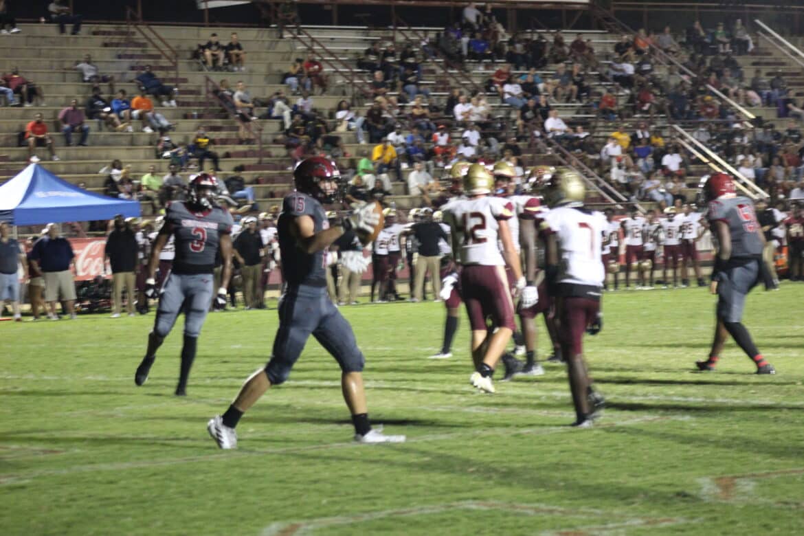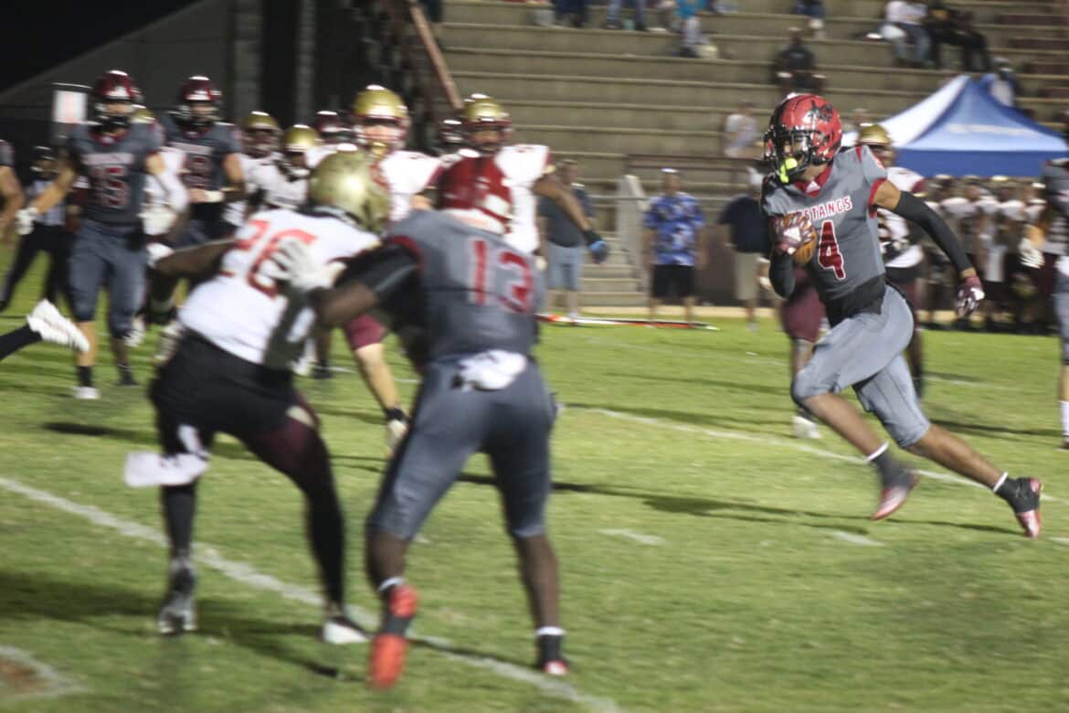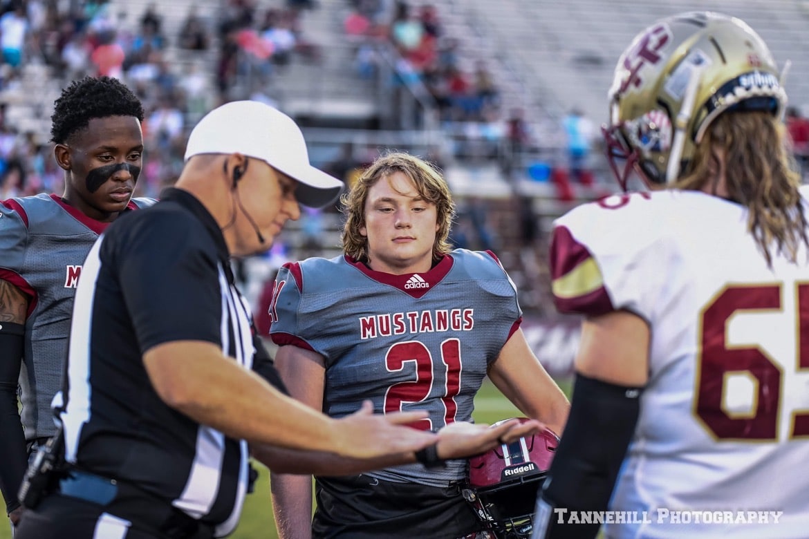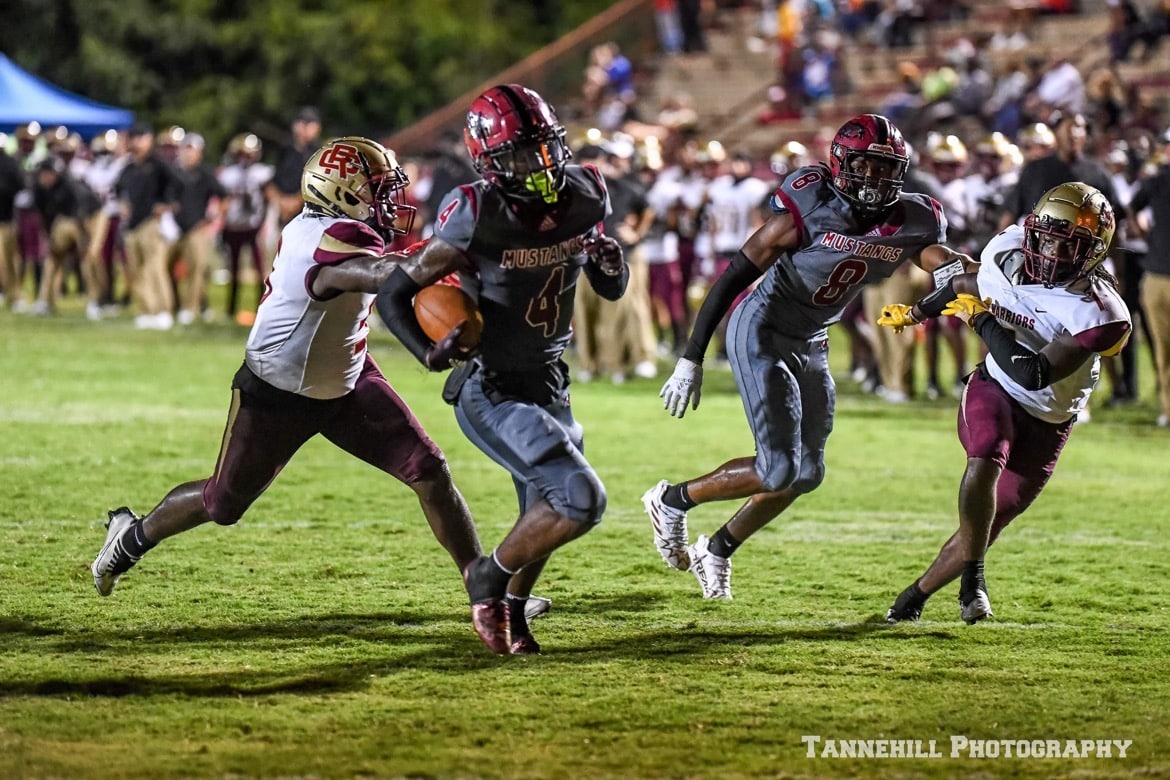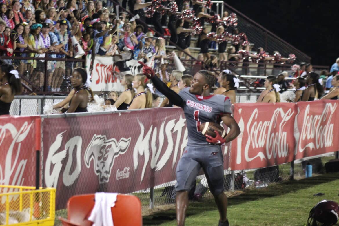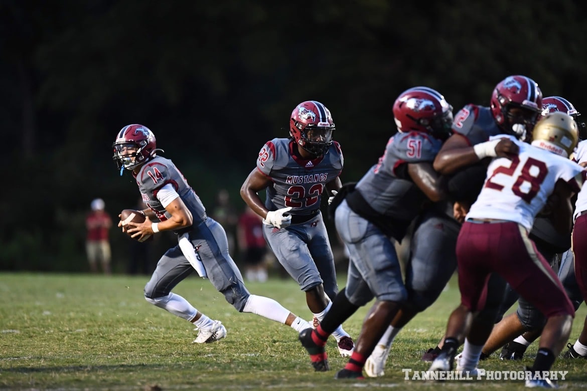 Clinging to a 35-21 lead with less than three minutes remaining in the game, the Stanhope Elmore offense faced a 4th and 7 inside the Russell County 30-yard line. Quarterback Jacob Bryant completed a 15-yard pass to wide receiver Tevin Landrum, giving the Mustangs a first down. A few plays later, Troy wide receiver commit Jackson Thomas took a handoff and rushed 12-yards for the game sealing touchdown, giving the Mustangs their first win of the season, a 35-21 victory over Russell County on Homecoming at Foshee-Henderson Stadium.