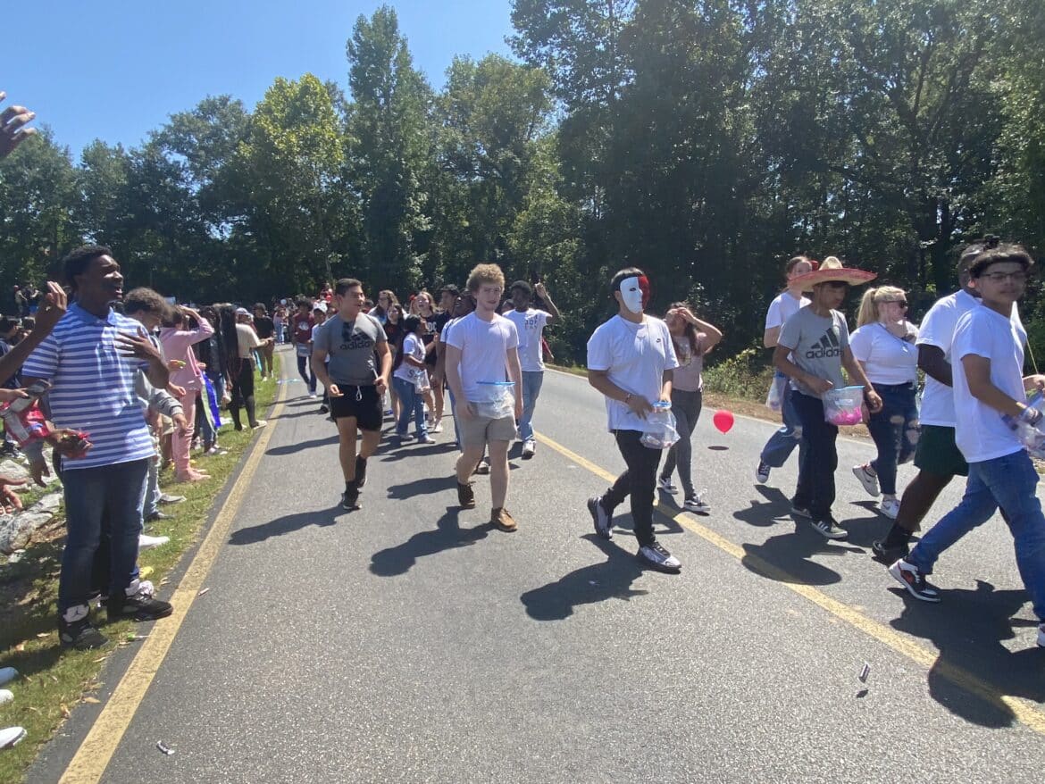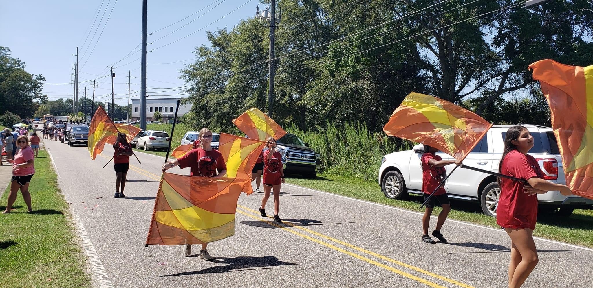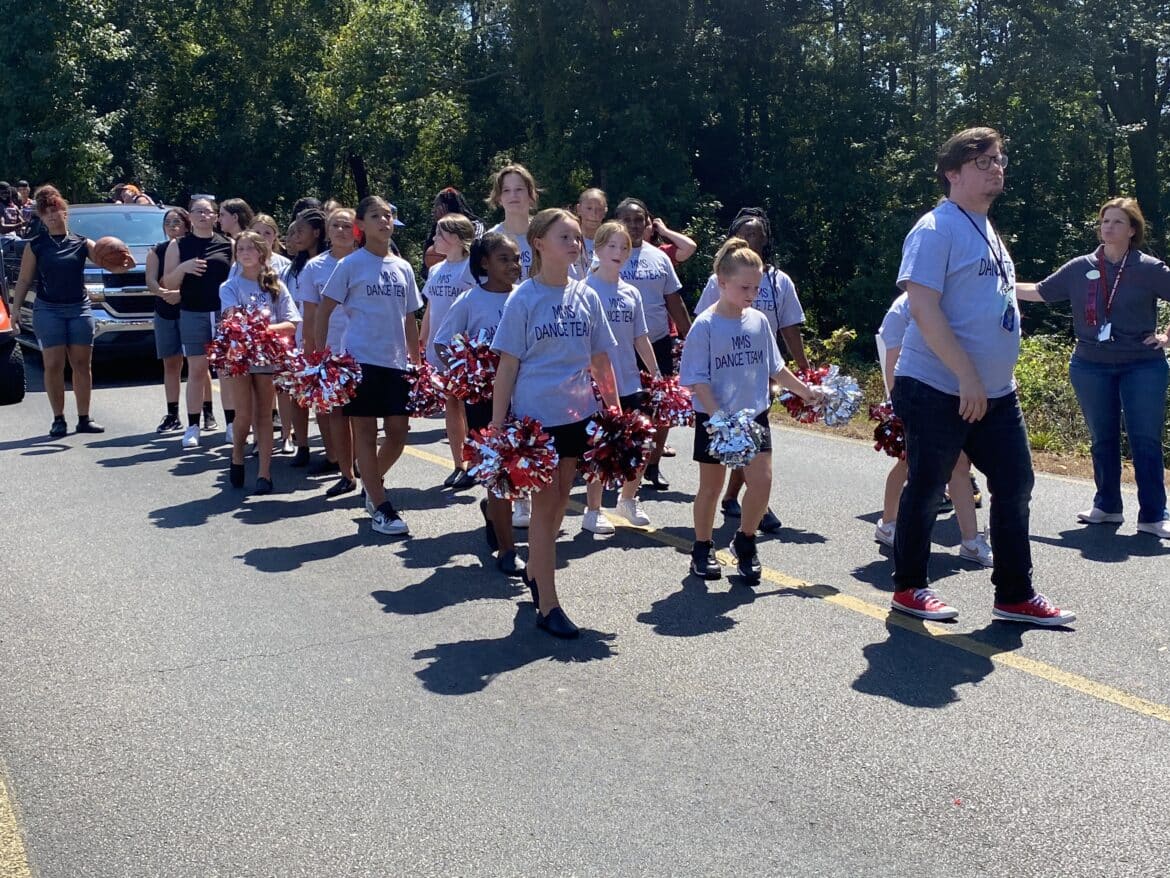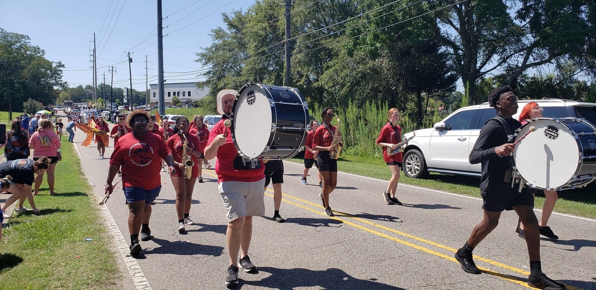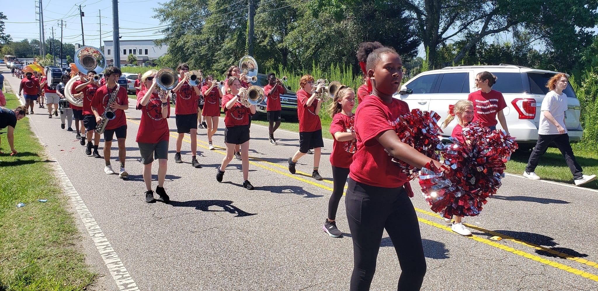 The homecoming court, cheerleaders, band members, ROTC, dance team, football players and different clubs and organizations march from the school, to Main Street, turning onto Chapman Road and paraded by Millbrook Middle School.