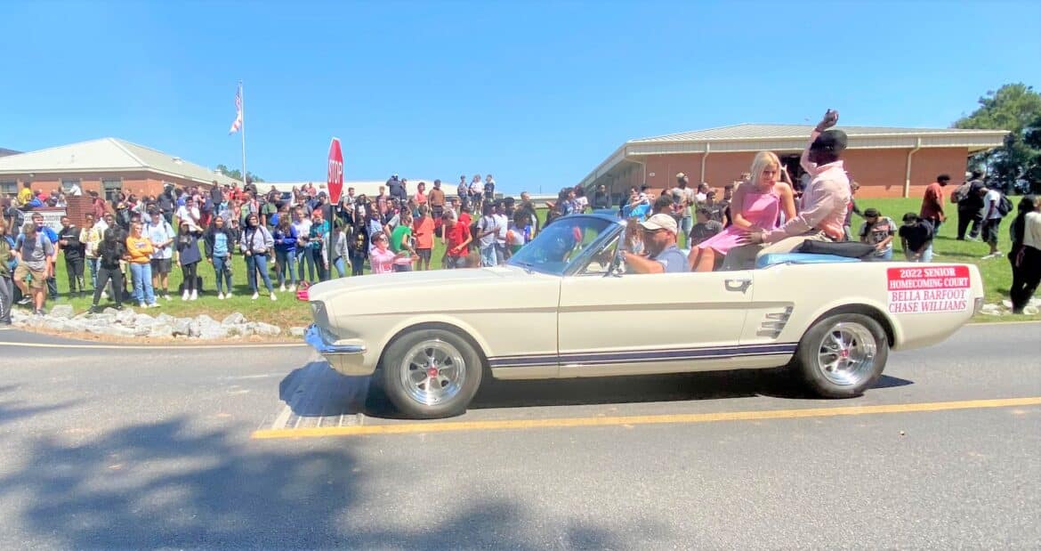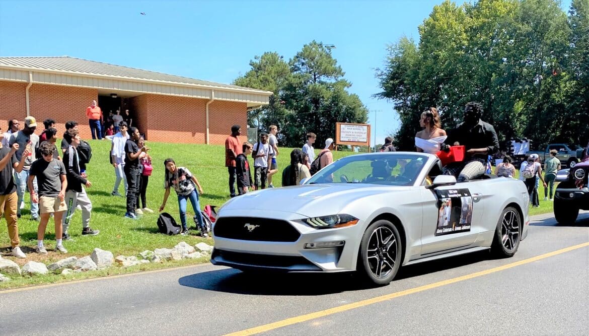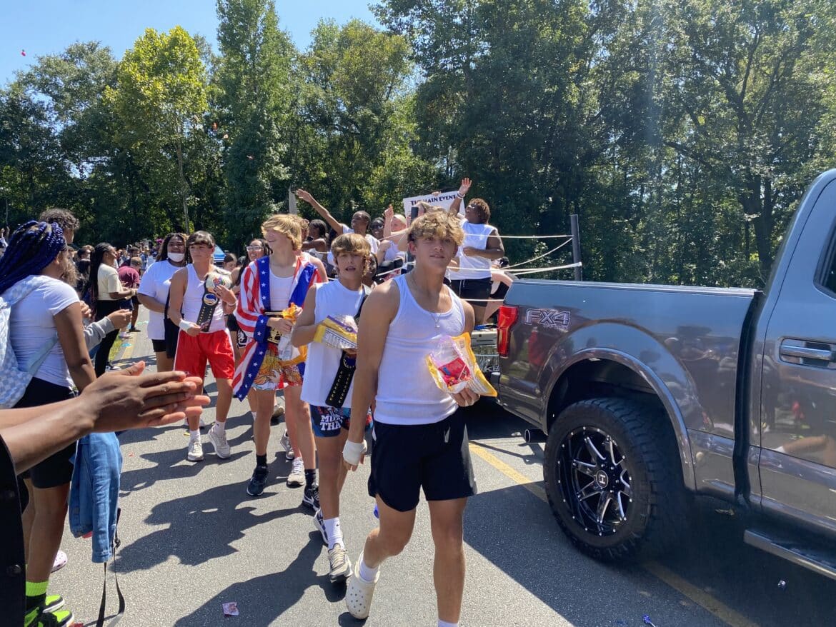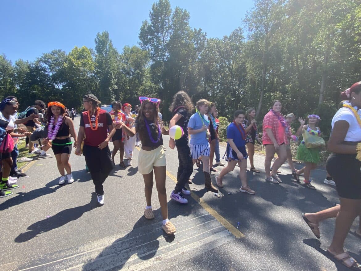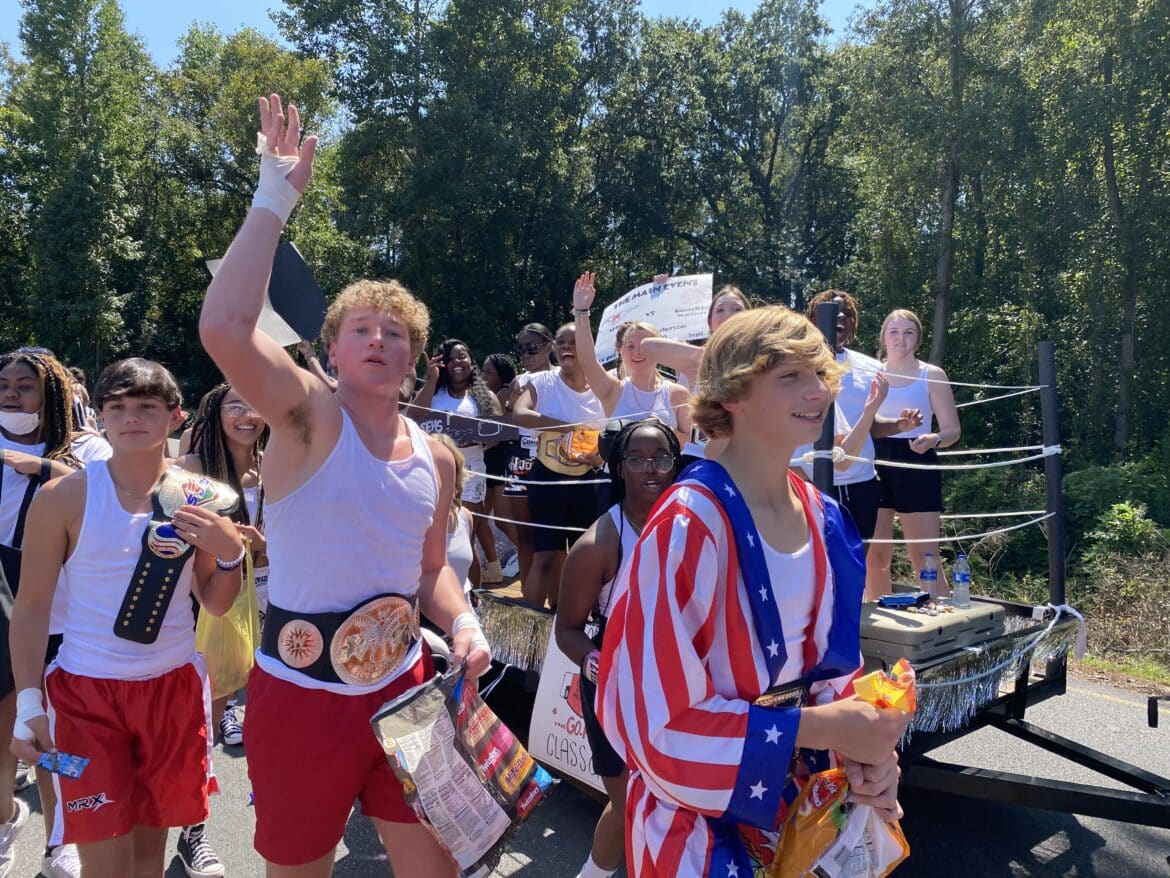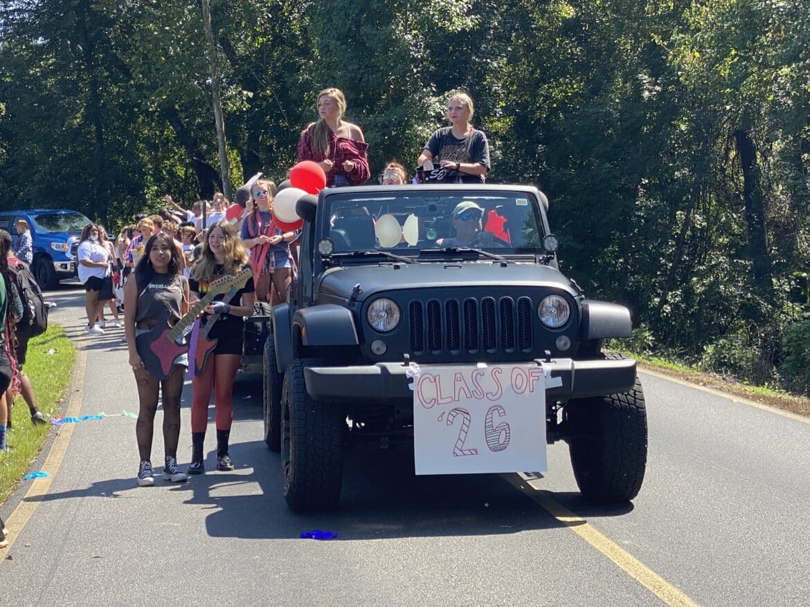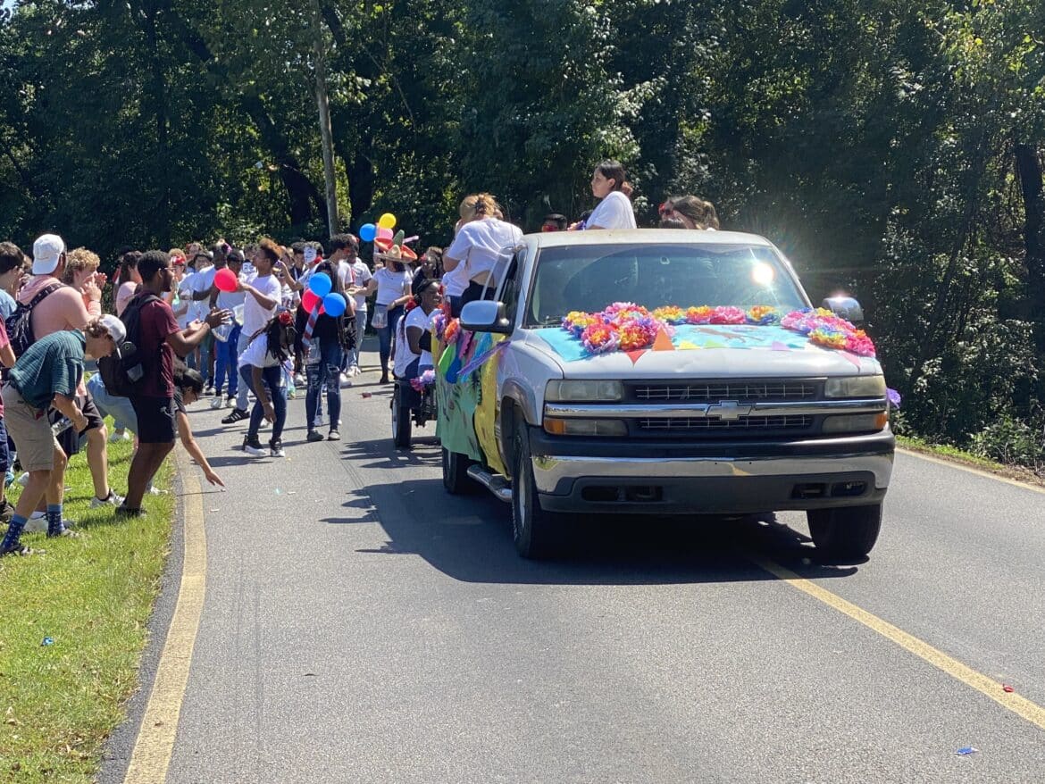 The homecoming court, cheerleaders, band members, ROTC, dance team, football players and different clubs and organizations march from the school, to Main Street, turning onto Chapman Road and paraded by Millbrook Middle School.