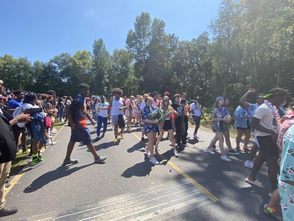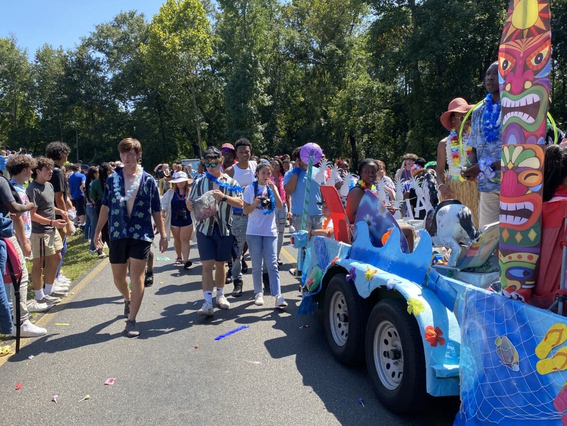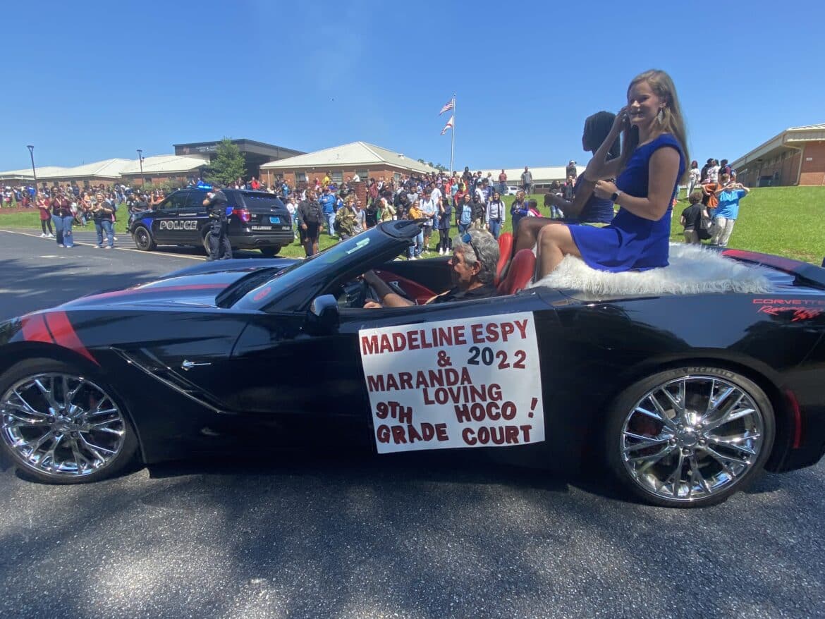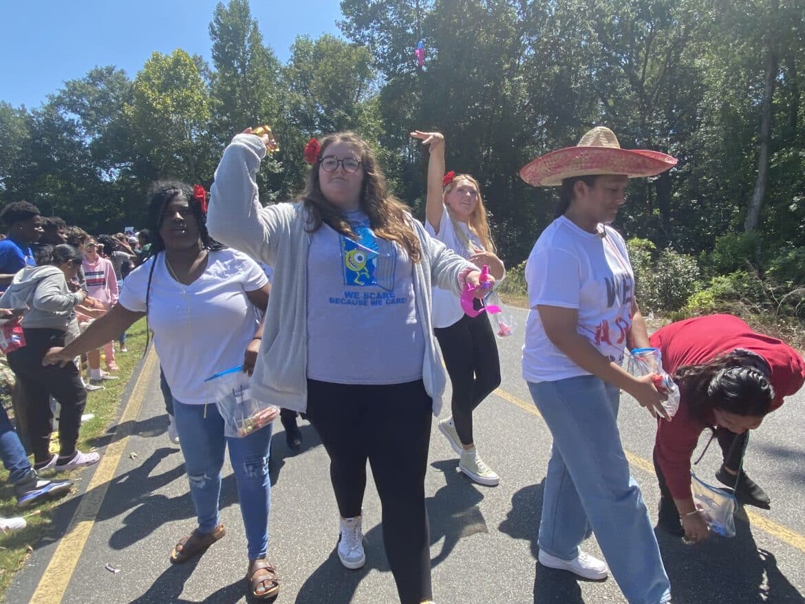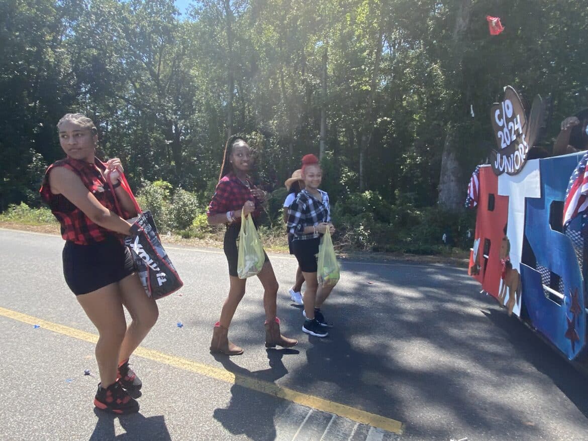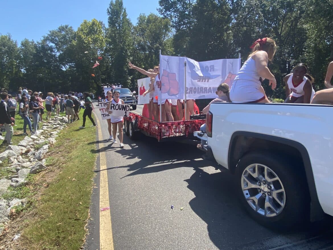 The homecoming court, cheerleaders, band members, ROTC, dance team, football players and different clubs and organizations march from the school, to Main Street, turning onto Chapman Road and paraded by Millbrook Middle School.