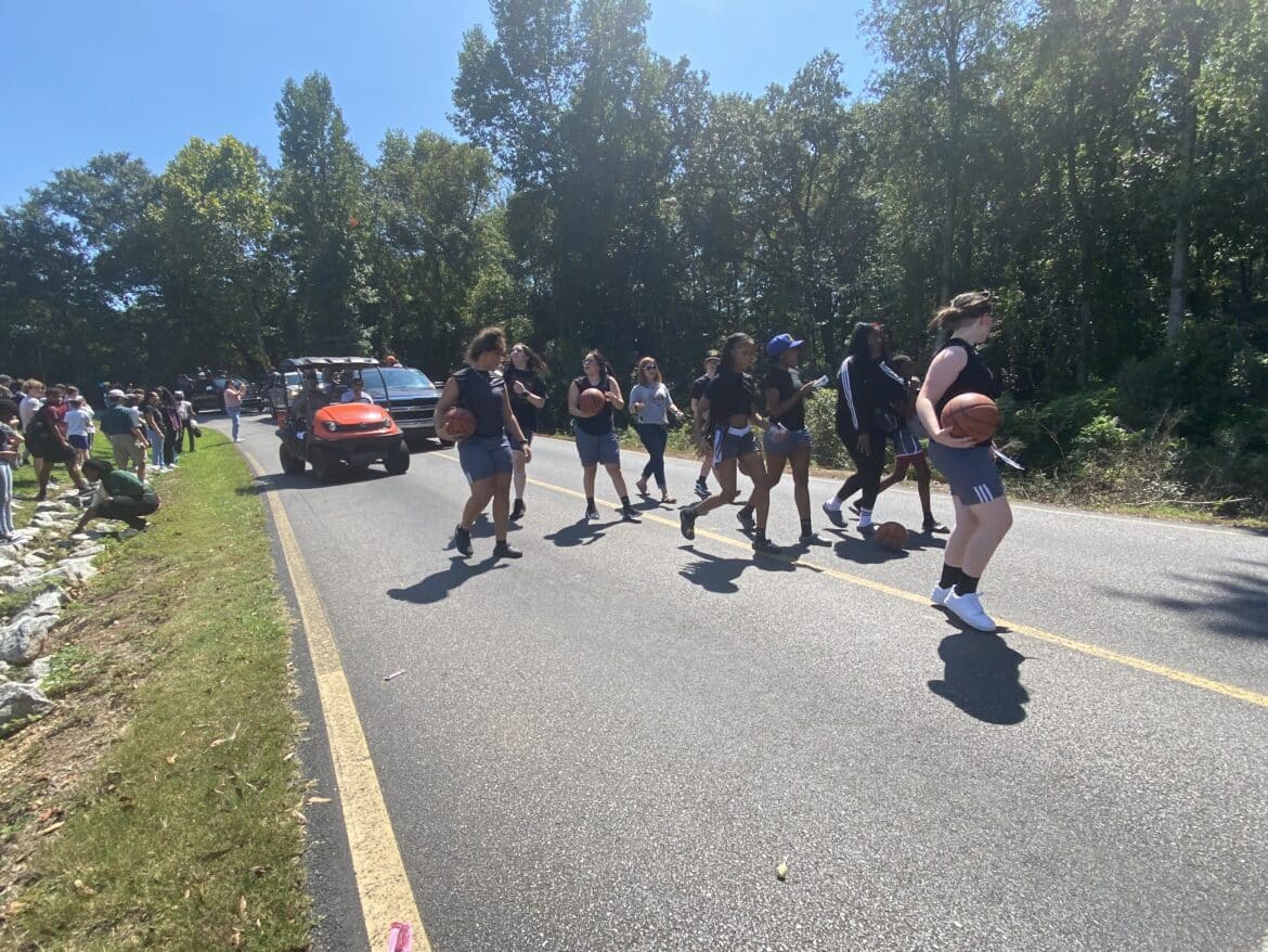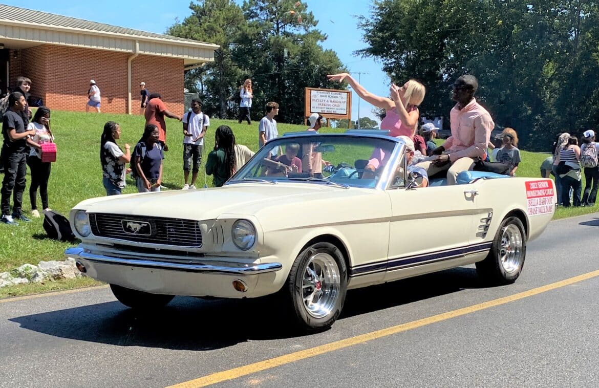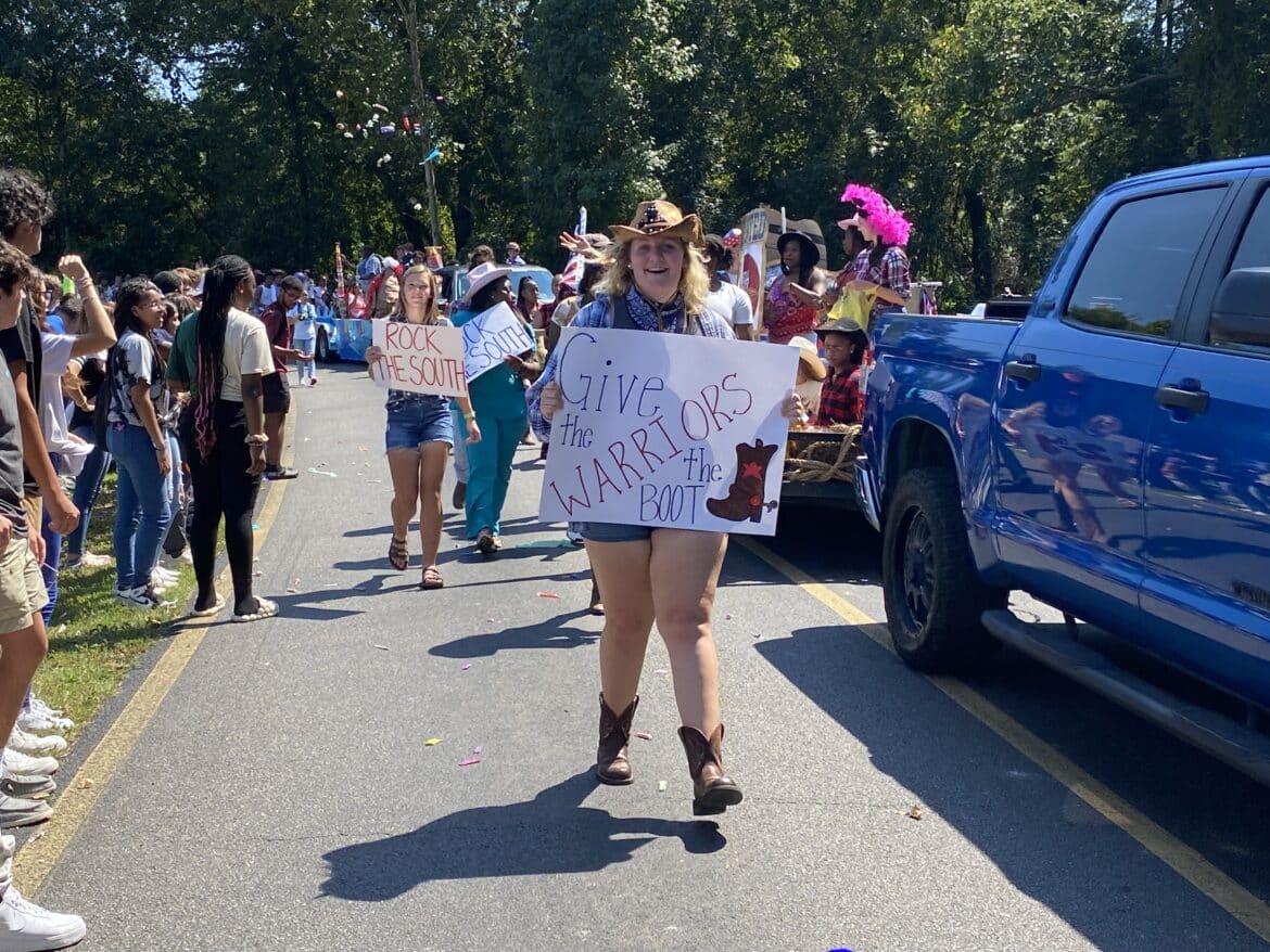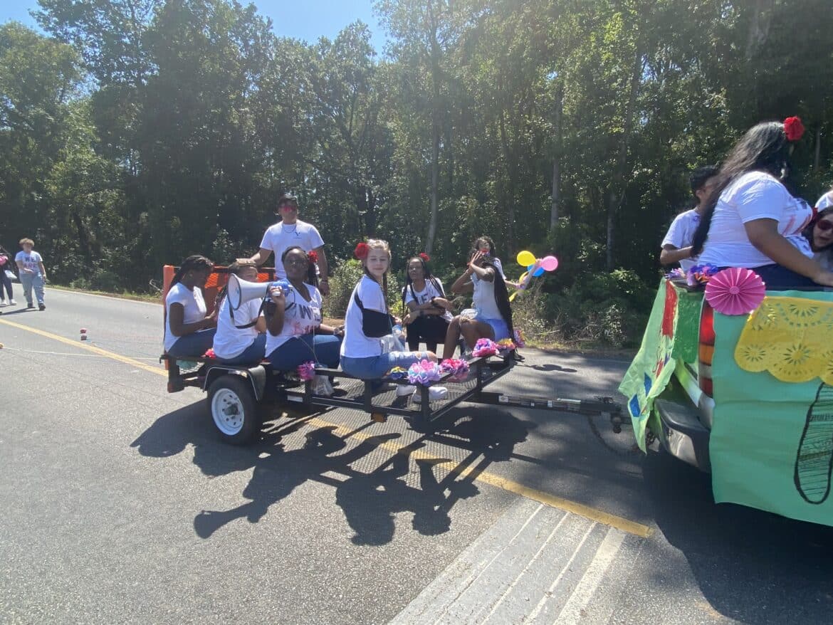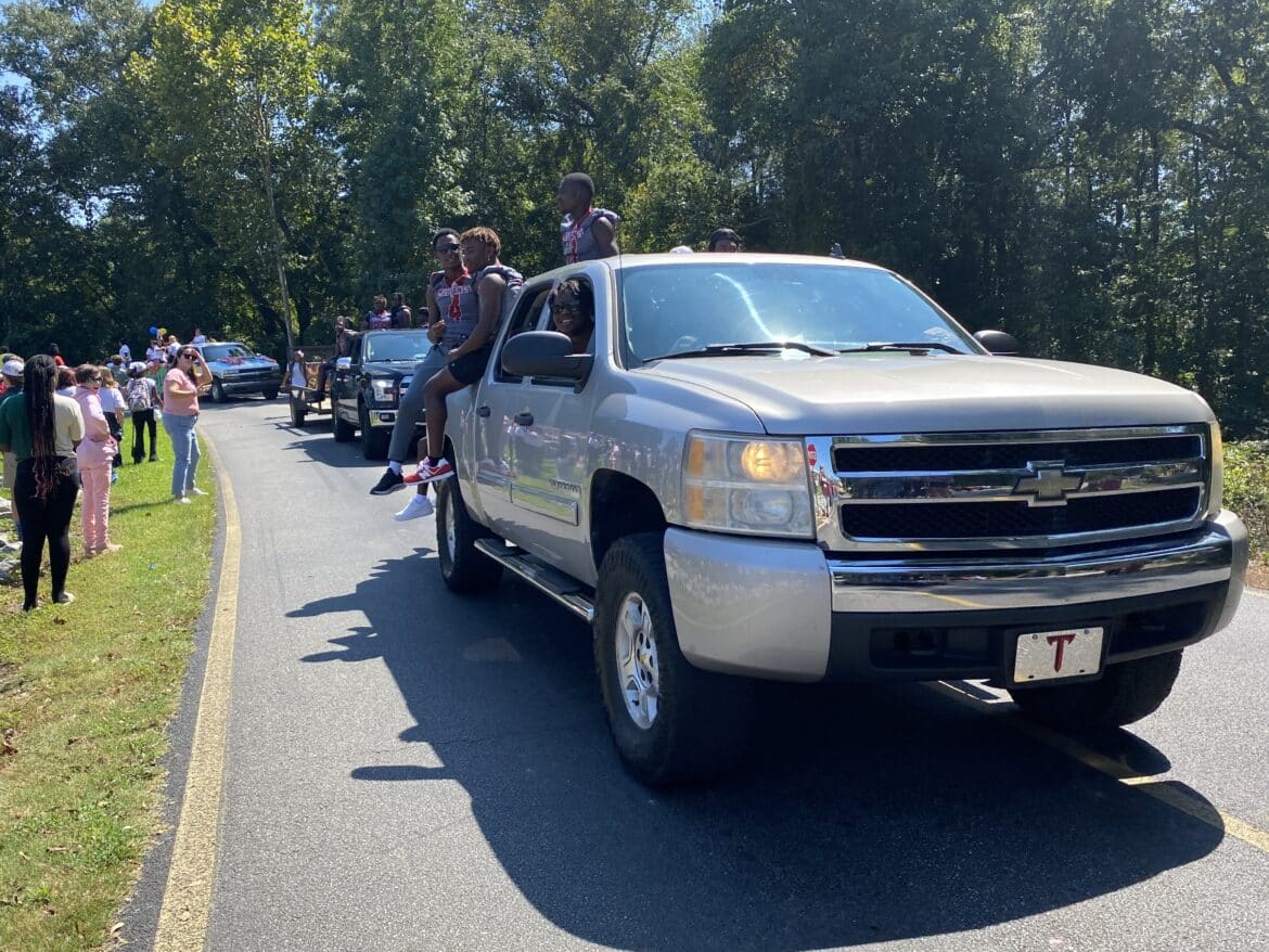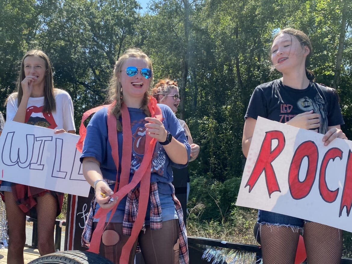 The homecoming court, cheerleaders, band members, ROTC, dance team, football players and different clubs and organizations march from the school, to Main Street, turning onto Chapman Road and paraded by Millbrook Middle School.