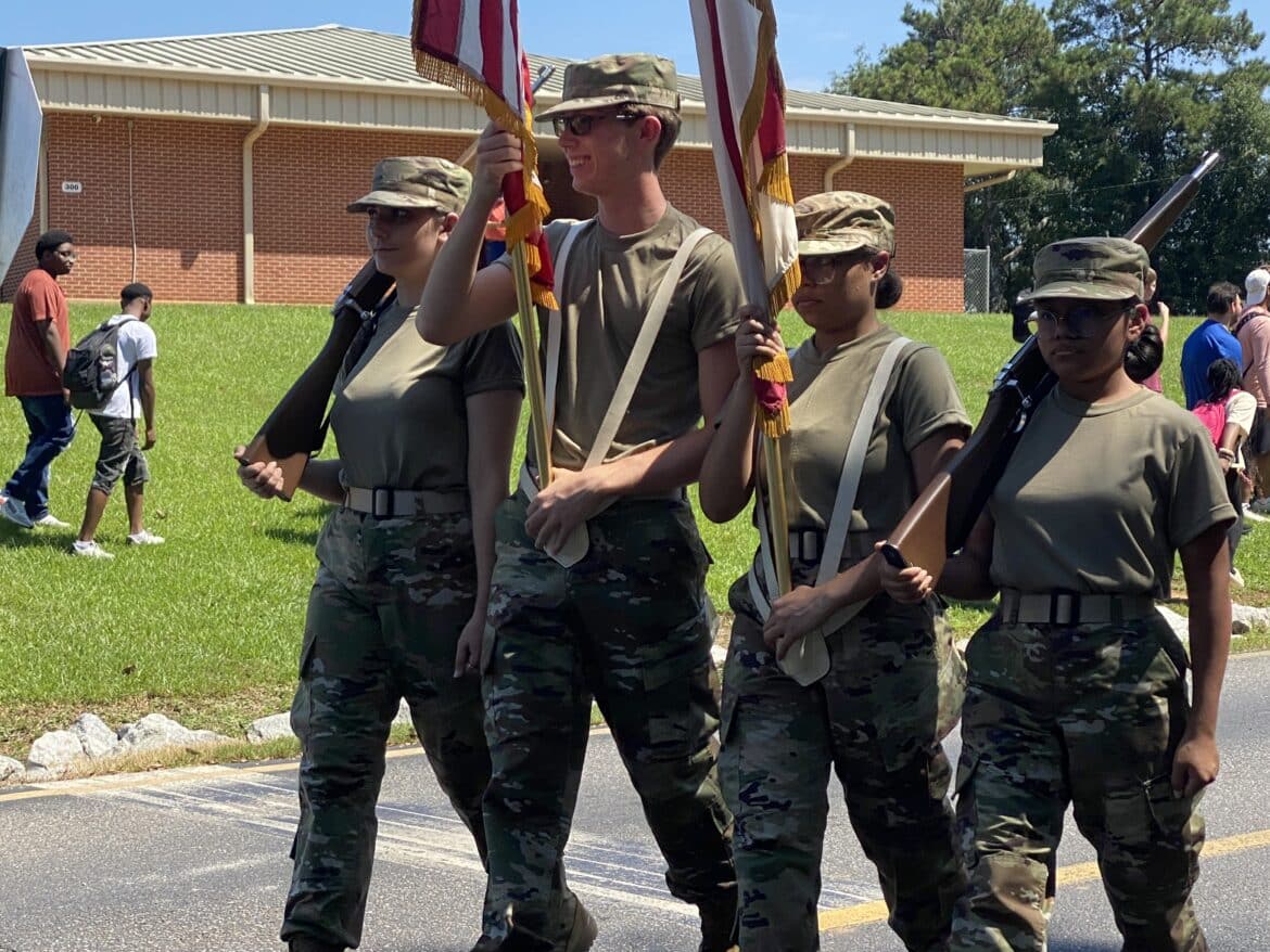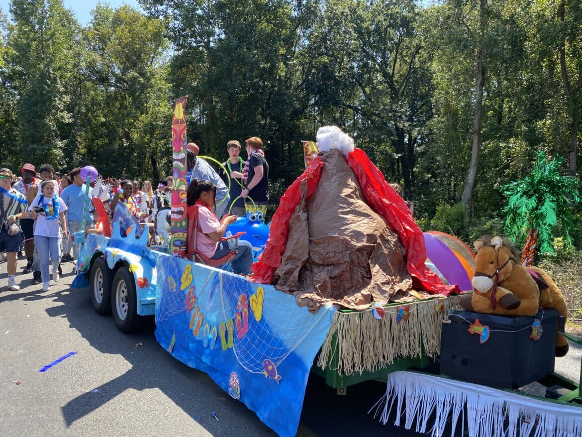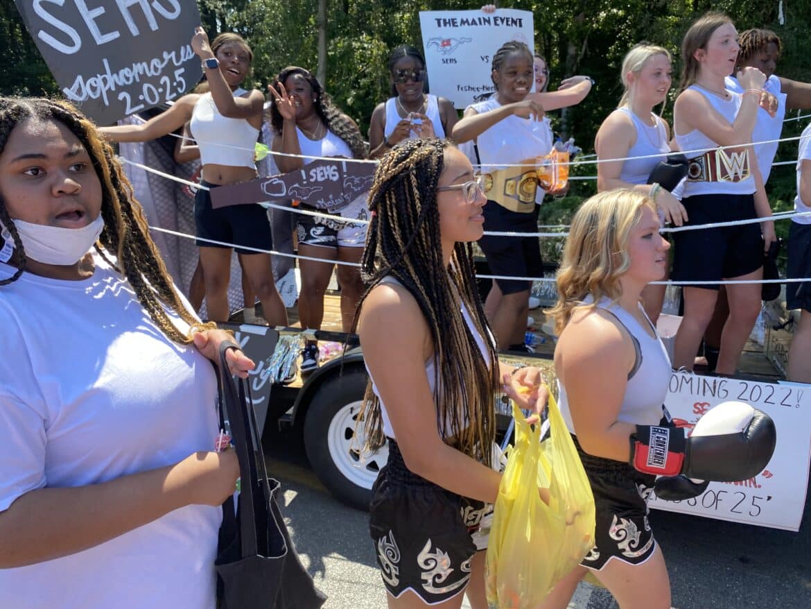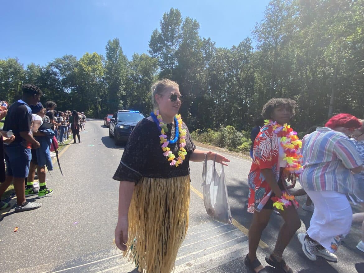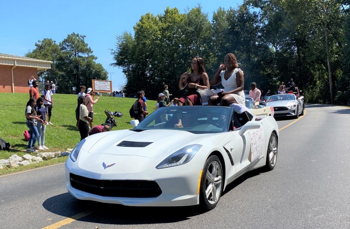 The homecoming court, cheerleaders, band members, ROTC, dance team, football players and different clubs and organizations march from the school, to Main Street, turning onto Chapman Road and paraded by Millbrook Middle School.