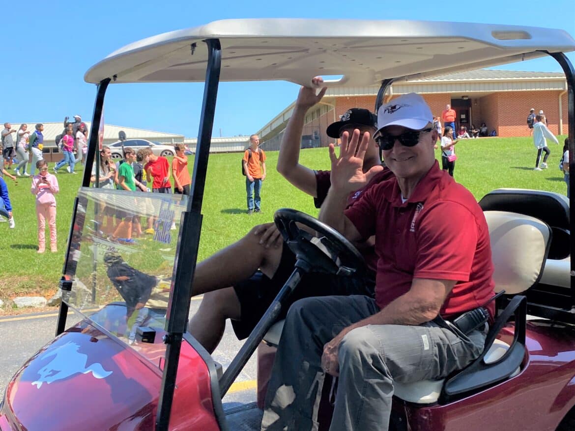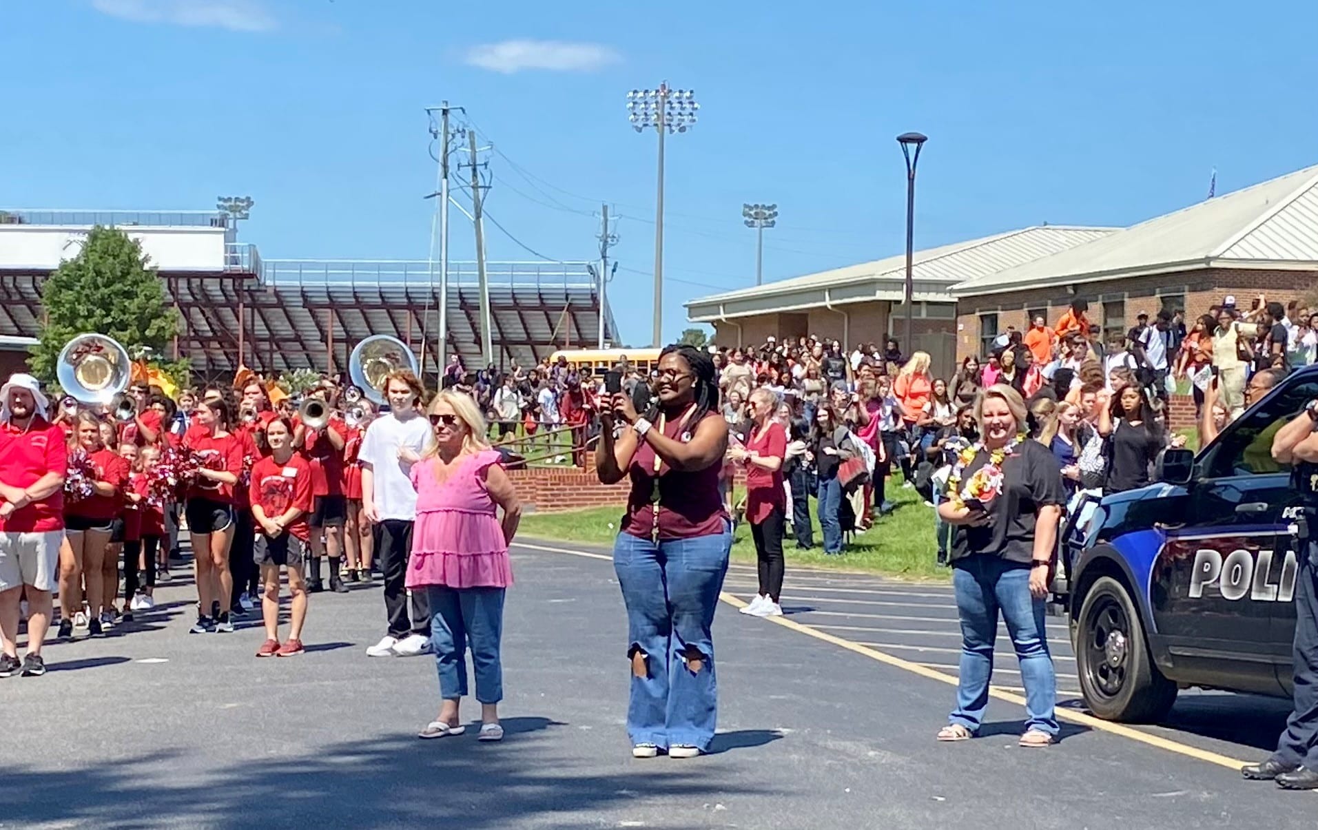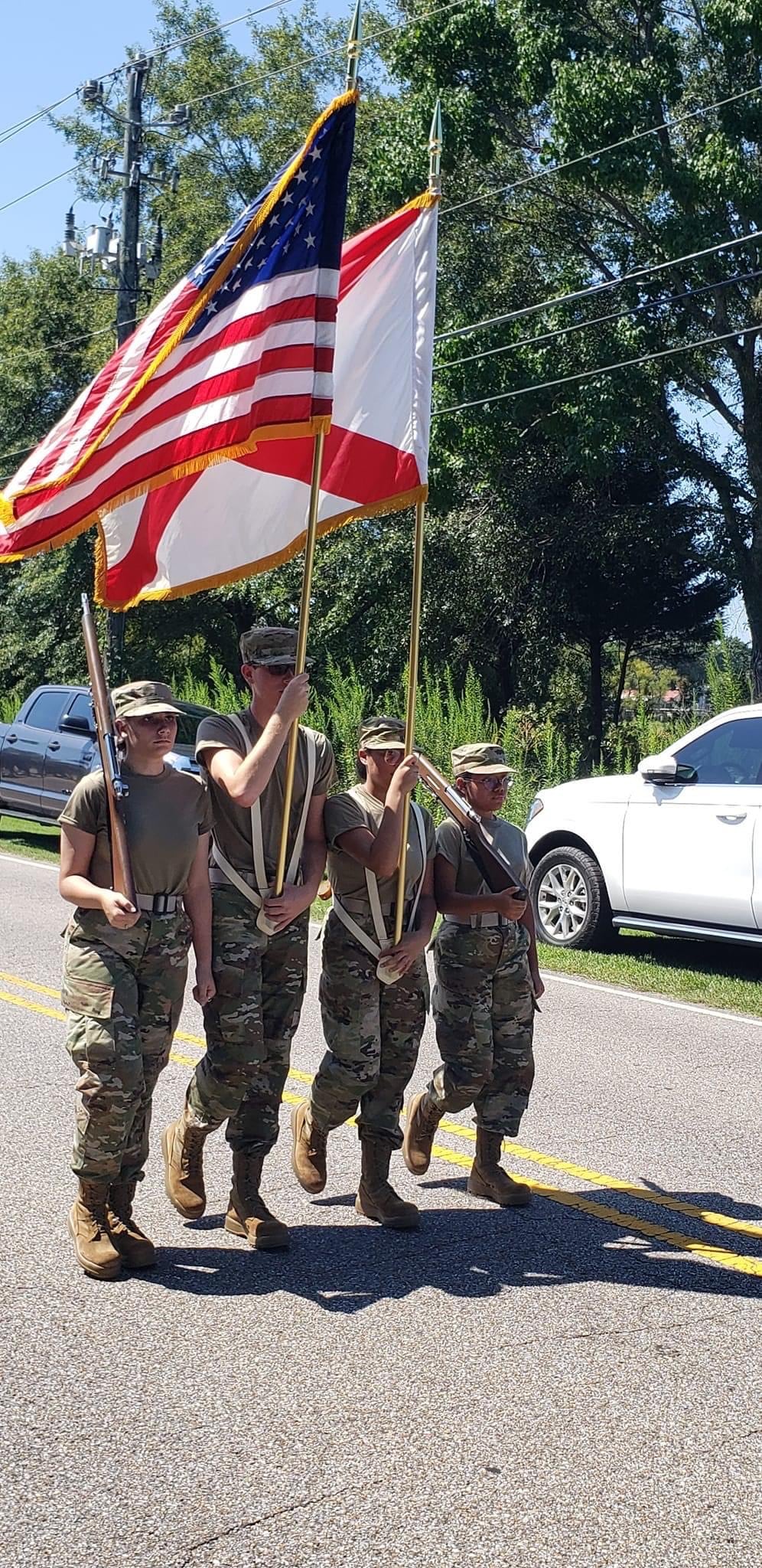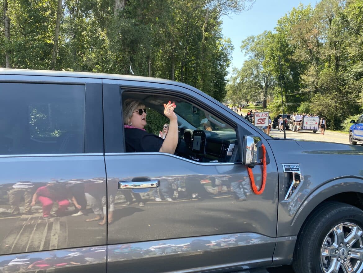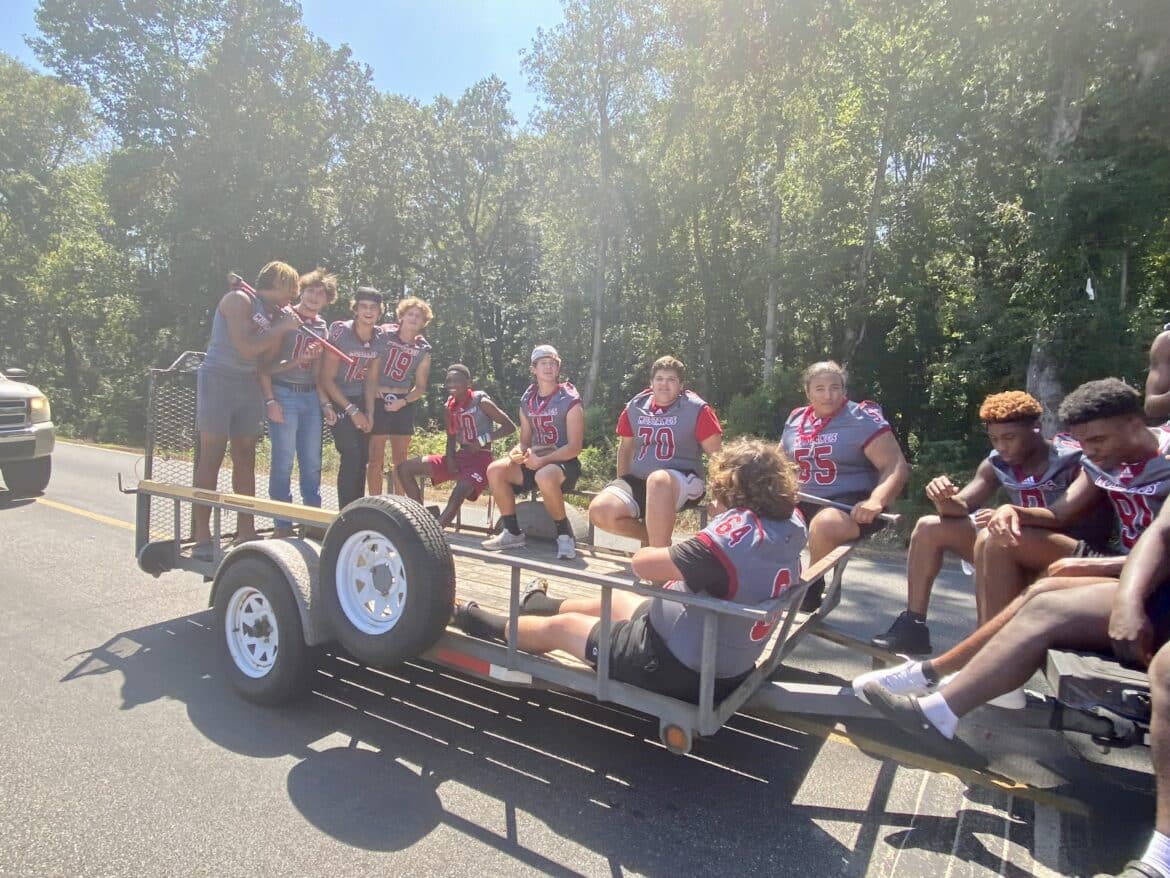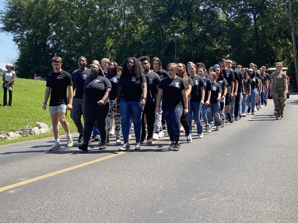 The homecoming court, cheerleaders, band members, ROTC, dance team, football players and different clubs and organizations march from the school, to Main Street, turning onto Chapman Road and paraded by Millbrook Middle School.