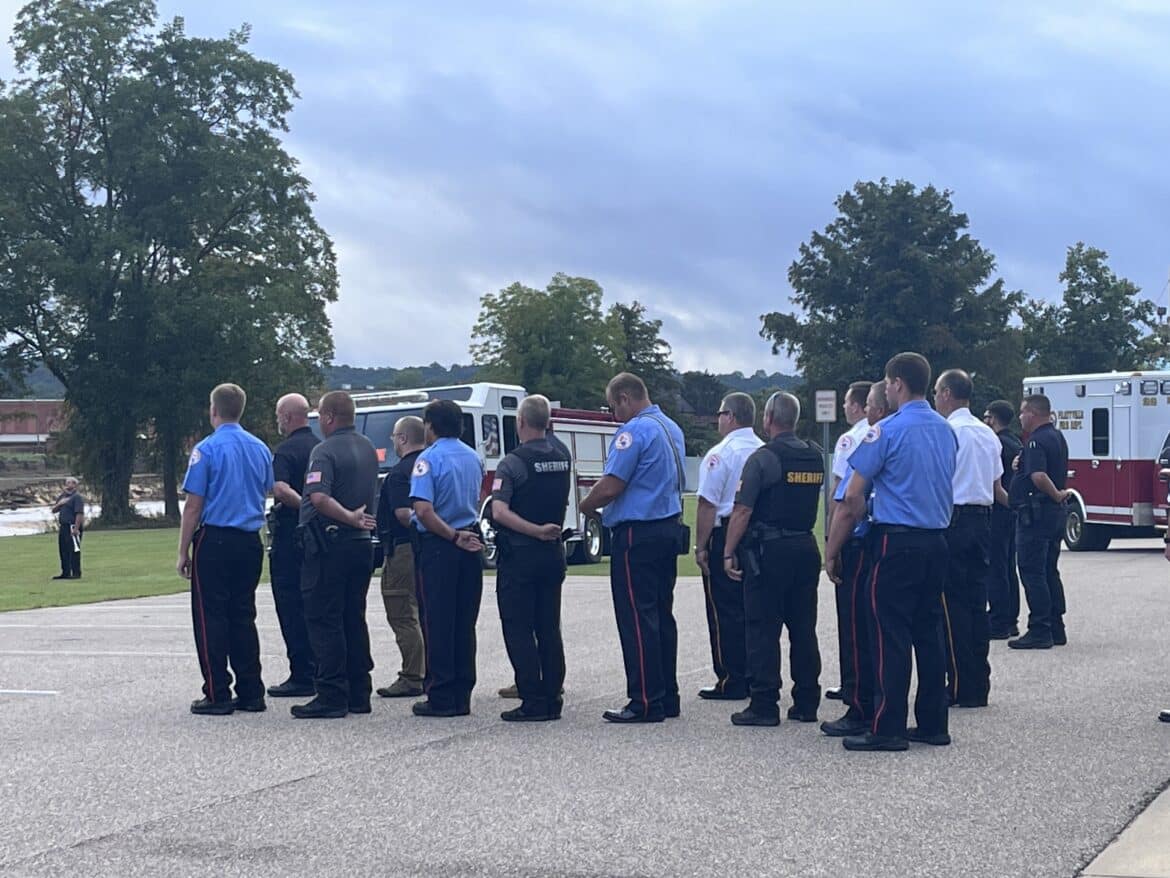 Kervin invited the children in attendance to lead the Pledge of Allegiance to a flag at half mast, and then had those same children present flags to the Chiefs of each of the cityโs first responder organizations – Fire, Police, and Sheriff.