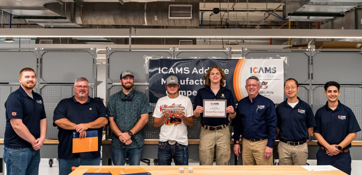Alex City- Central Alabama Community College students Tanner Floyd and Tristan Carisch placed second out of ten total teams at the inaugural Auburn University, Interdisciplinary Center for Advanced Manufacturing Systems (ICAMS)competition. Floyd and Carisch were the only community college students who participated in the competition. The other nine teams were comprised of 31 Auburn Engineering students.