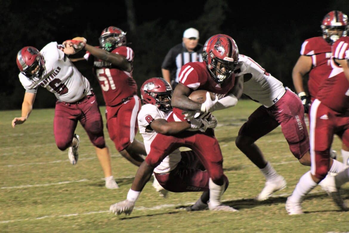 The Stanhope Elmore High School defense had no answer for the high-powered Prattville Lions offense, and their lightening quick wide receiver Kameran Shanks. Committed to play college ball at Liberty University in South Carolina, Shanks made his presence felt the first time he touched the ball, returning a kickoff for a touchdown and answering Stanhope Elmore’s touchdown on the opening drive of the game. It was the first score of a big night for the Lions as they easily defeated their I-65 rivals, winning 49-10.