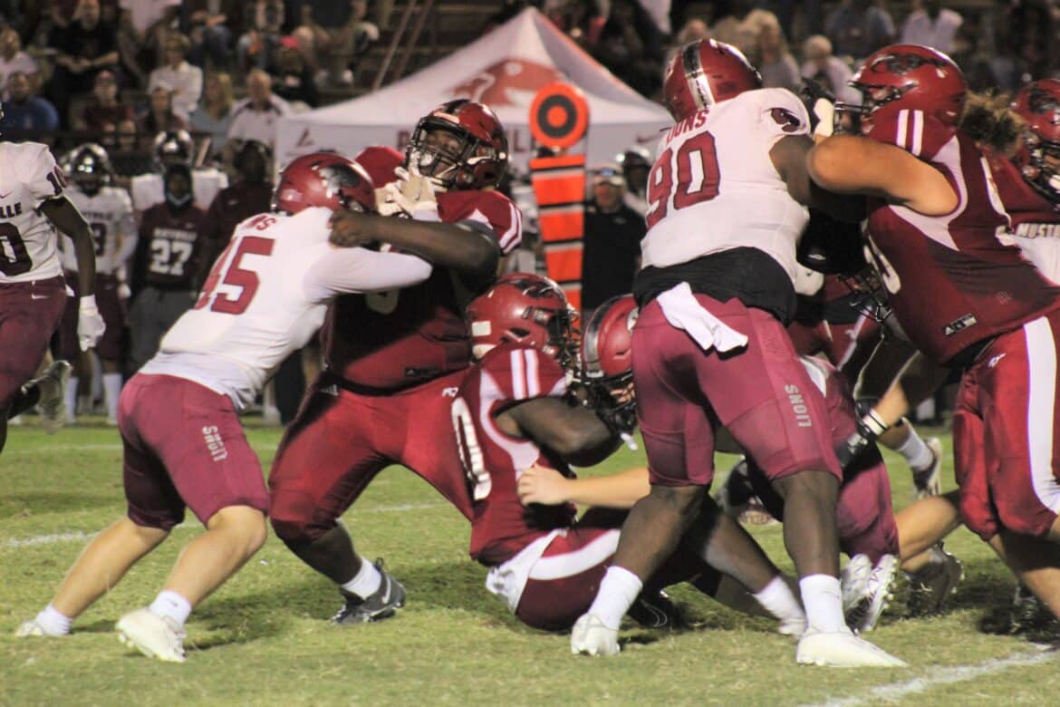 The second half was more of the same. The Lions’ pass rush defense constantly pressured Mustangs quarterback Jacob Bryant, forcing rushed and inaccurate passes. The physicality of the Lions’ rushing attack was too much for the Mustangs front seven, and then Shanks on the outside for the Lions was the fastest and most electric player on the field, catching a 30-yard touchdown reception early in the 3rd quarter.