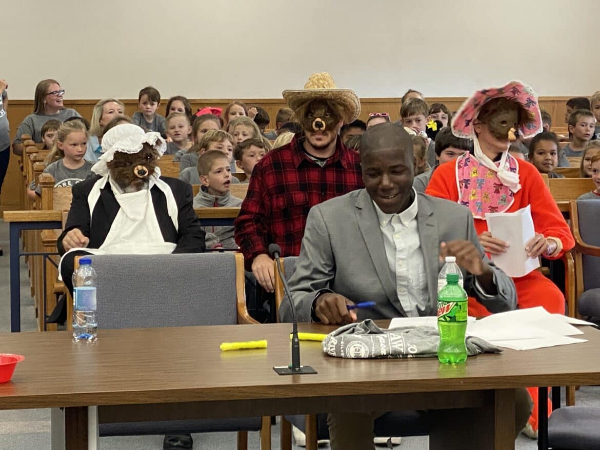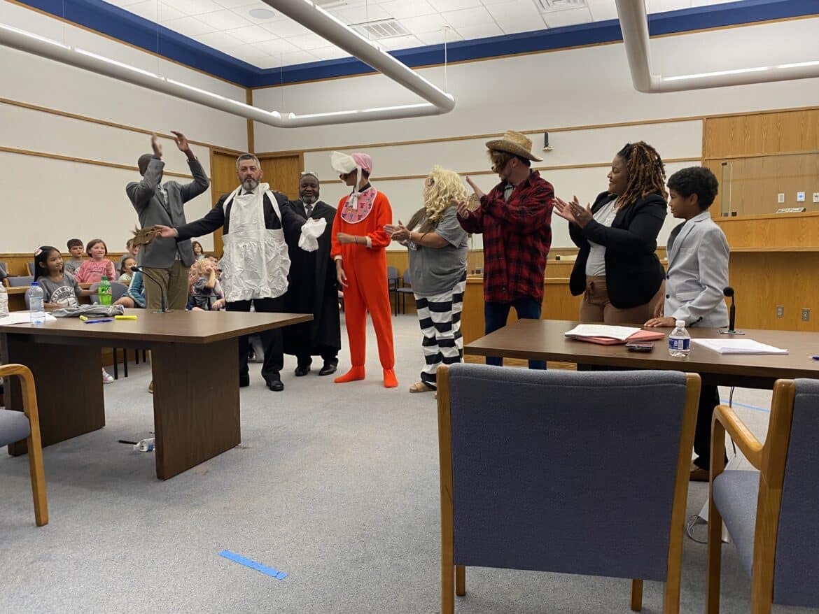 This year, the court case presented to students, who served as the jury, covered the story of Goldilocks and the Three Bears. Did she unlawfully steal the porridge from the bear’s home in the woods. Yes, according to the students, who after hearing from the prosecutor and defense attorney, found Goldilocks guilty!