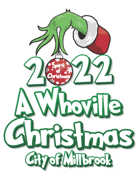 • The annual Millbrook Spirit of Christmas Parade will be Saturday, December 3rd, 2022. The theme for this year’s parade is: “A Whoville Christmas”. The Parade will start at 2:00 p.m. The Parade will begin at the Mill Creek Sports Complex behind Smokehouse Pit BBQ and will end at the intersection of Main St. & Coosada Rd. at the Millbrook Economic Development Center/Millbrook Area Chamber of Commerce (old City Hall).