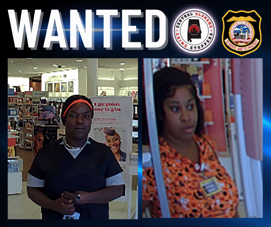 Opelika Police Investigators released a photo of two unknown subjects wanted for a felony retail theft. The offense occurred, Tuesday, October 11, 2022, at about 3:00 p.m. at Ulta, 2690 Enterprise Drive, Opelika, Alabama. Investigators say the pictured suspect’s, two adults, entered the business with a juvenile. The first suspect, identified as a black female, with long hair, wearing an orange Halloween top and purple pants, with white sneakers. The second suspect, identified as a black female, with long hair in a ponytail, wearing dark scrubs and an orange hair band. The suspects stole multiple bottles of perfume before exiting the store in an unknown direction.