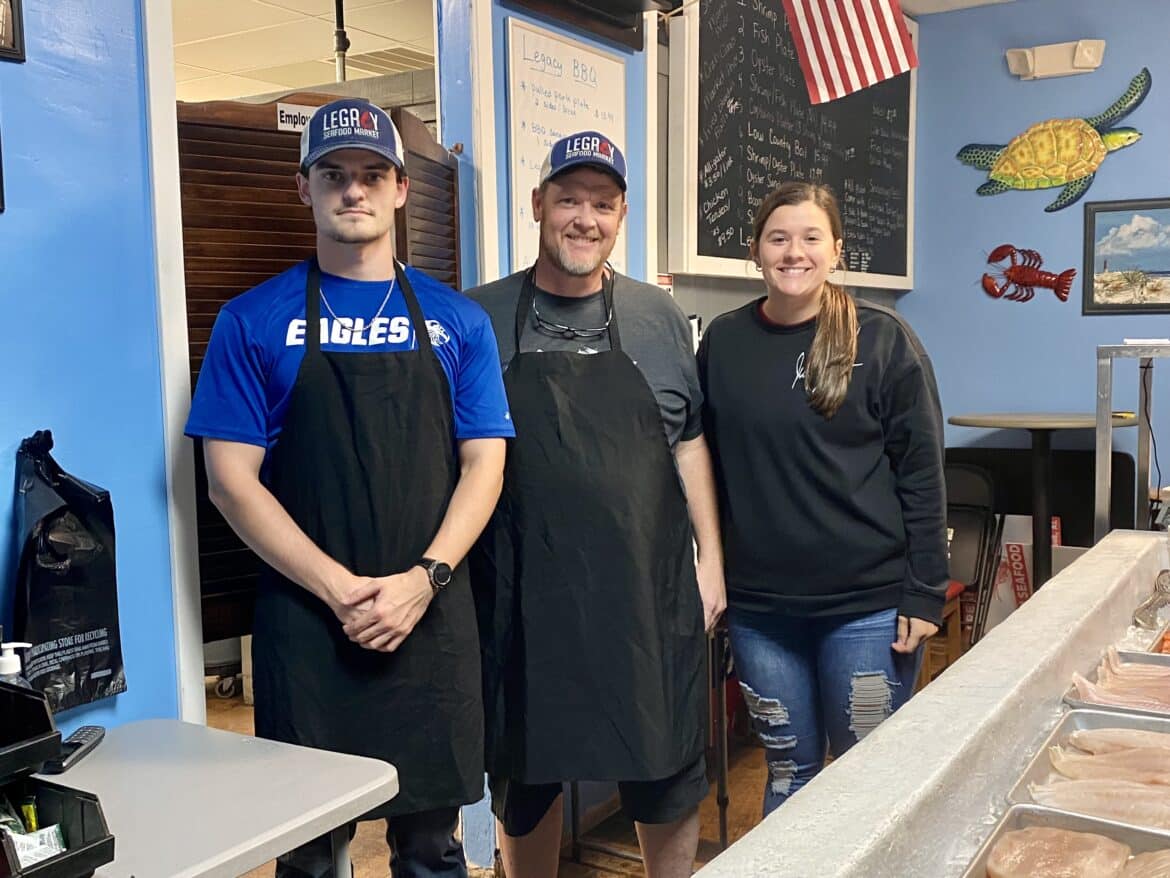 During the first year of business, Legacy Seafood Market incorporated barbeque in the beginning of 2022. Joshua Tatum, owner of Legacy Barbeque, teamed up with Jeff Campbell for a wonderful combination of seafood and barbeque. They both catered several events together. The biggest event to date was the Kevin Turner Golf Tournament at RTJ, where they served over 400 golfers and volunteers. They also provided meals to the local sports teams at the schools in our area.