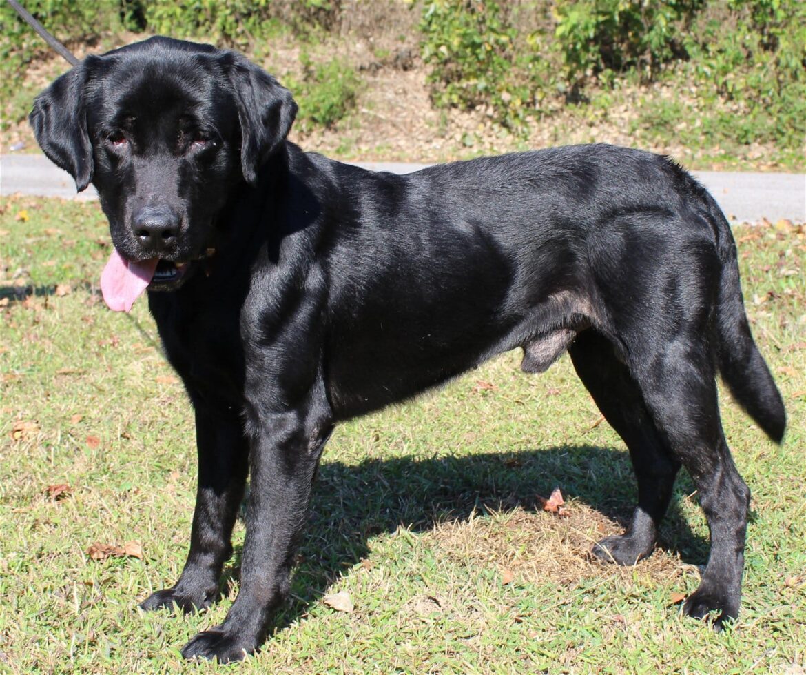 Jack is a 2-year-old male Black Lab who must be neutered before he is adopted. He was brought in as a stray from out in the county; and no one reclaimed him. Jack is as handsome as any dog we have ever seen. He is solid black and his coat is so shiny! Jack weighs 58 pounds so he is a big guy. This big sweetheart LOVES to play fetch; and he never gets tired of it. Jack is an athlete–he loves to run–so he will need a nice big, fenced yard where he can safely play! He would be good with other dogs and older children. Jack is a perfect example of why Labs are such a popular choice for a family dog. He is fun to be around, gets along well with others, and he is both smart and eager to please! Jack already knows the commands–sit, stay, and no. Simply put–Jack is the total package and a totally awesome boy!
