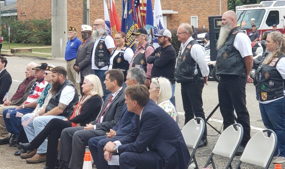 Jerry Starnes also addressed the crowd. He is the newly elected House District 88 representative and a Lt. Colonel with the Alabama Army National Guard. Served tours multiple tours overseas as a military police officer.