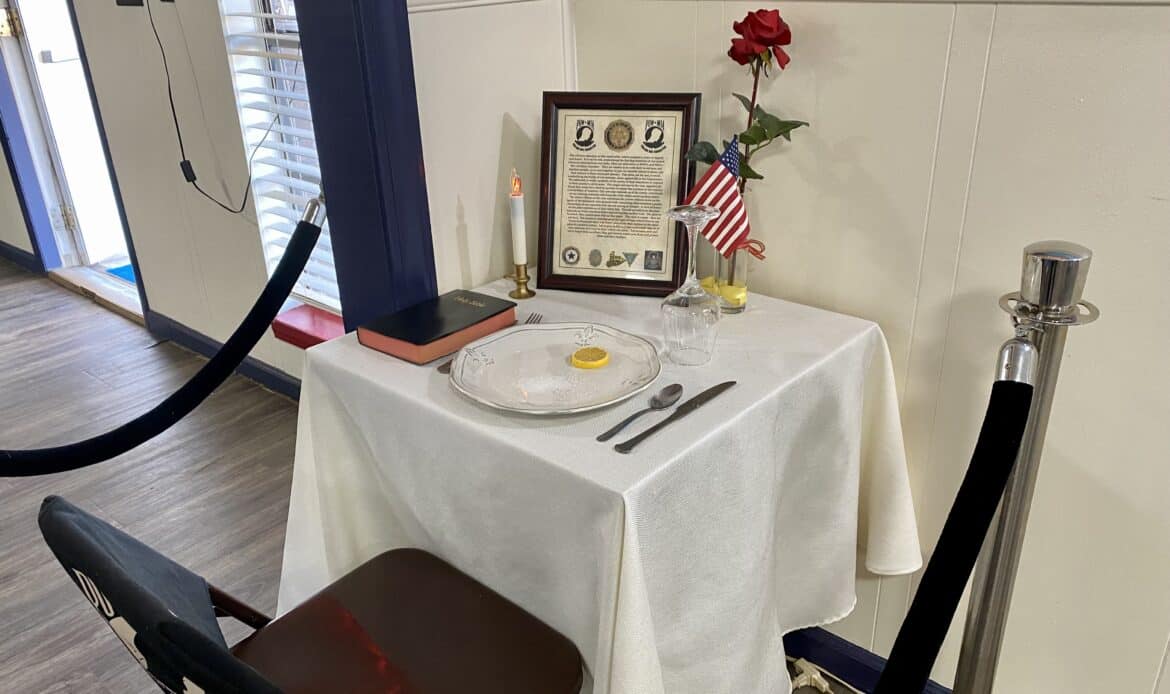 Top Photo: The kitchen crew! Norman Ginther, Commander Bobby Boswell and Charlie Helton