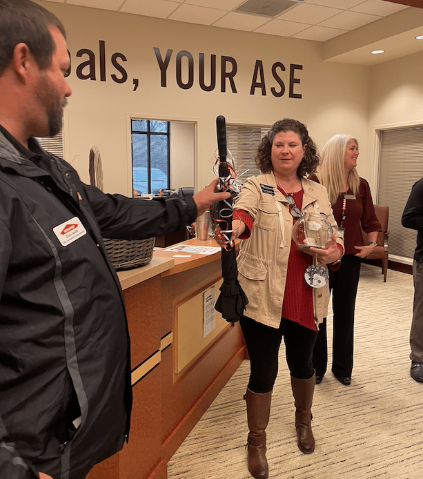 Four different door prizes were given. An umbrella, cup and cooler with the ASE logo and the new chamber ornament.