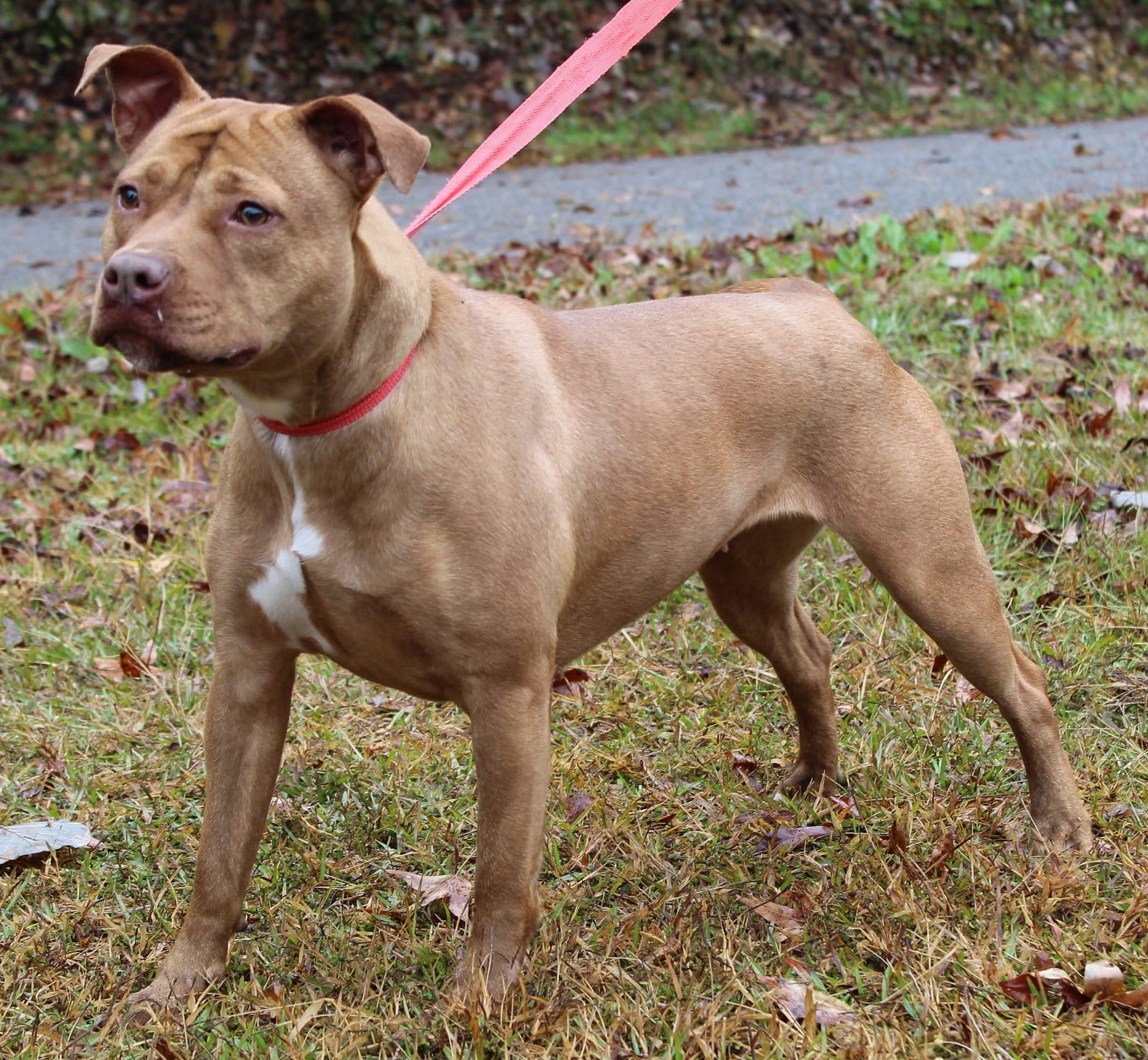 Nala has already been spayed. She has a brown coat with white markings; and she is a very pretty girl. Nala weighs 42-pounds so she is considered to be a medium sized young adult dog. She is very well behaved–both leash trained and house trained. Nala knows basic commands–sit, down, etc. She would be fine with children and other dogs. Nala is a great dog who is ready for her own home. You supply the home and Nala will bring the love and joy!
