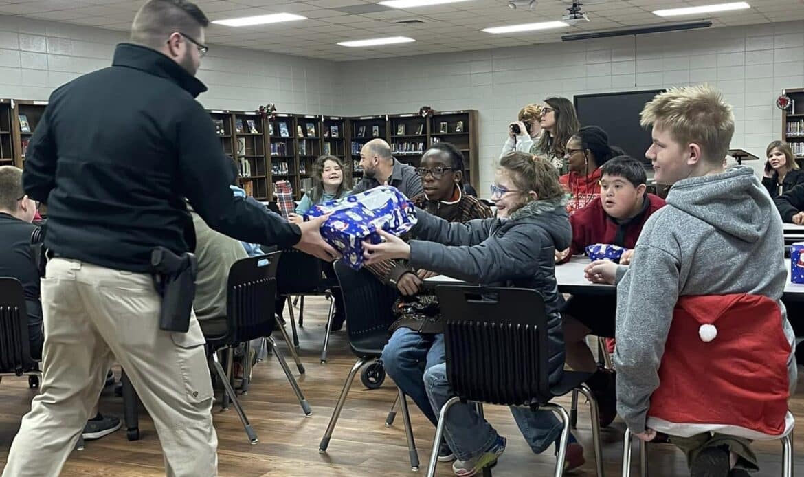 Recently some very special students from Millbrook Middle School received surprise Christmas presents from the Punishers LEMC Three Rivers Chapter and members of the Millbrook Police Department.