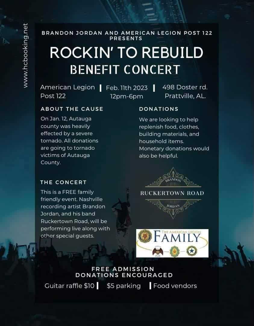 Area residents are invited to a FREE, family-friendly concert Feb. 11 from noon to 6 p.m. at American Legion Post 122 of Prattville. Donations will be accepted for the event.