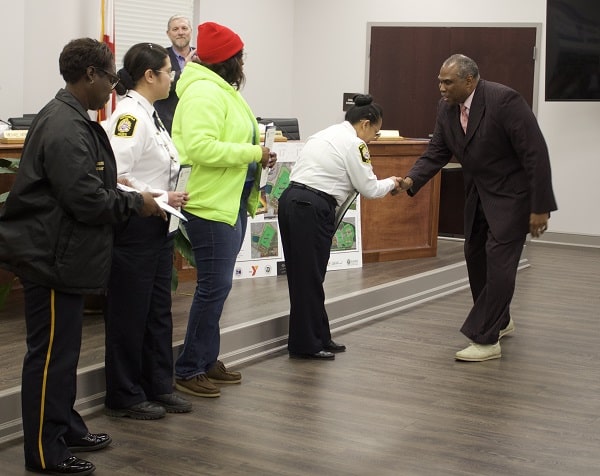 While there were four crossing guards present to accept the proclamation to honor them, this proclamation honors all of the men and women throughout the county who work tirelessly to ensure student safety.