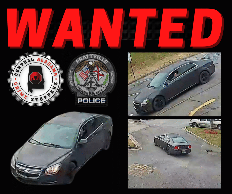 Prattville Police Investigators released a photo of an unknown subject wanted for vehicle burglary. The offense occurred, on Sunday, February 26, 2023, around 7:56 a.m., at McDonalds, located at 720 S. Memorial Drive, Prattville, Alabama. Investigators say the pictured suspect, driving what appears to be a Chevy Malibu, stole a catalytic converter from the victim’s vehicle. The suspect left the area in the pictured vehicle in an unknown direction of travel. There are no other details available for release at this time.
