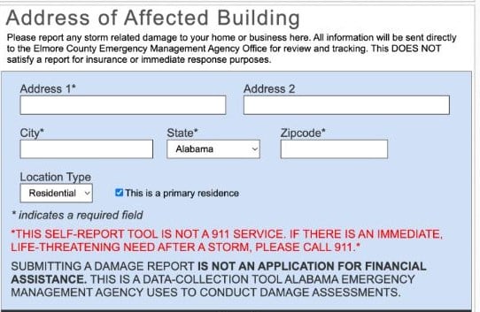 To assist with the assessment process though, our Elmore County Emergency Management Agency (EMA) is sharing a new way to self report private property storm damage by using the Orion platform. To self report storm damage to private property, you can do so by downloading the Elmore County EMA app and use the damage report link or follow the link here to complete the damage report. The Elmore County EMA will verify the report once submitted and the citizen will be contacted. Citizens can also report private property storm damage by contacting the Elmore County EMA office at 334-567-6451.