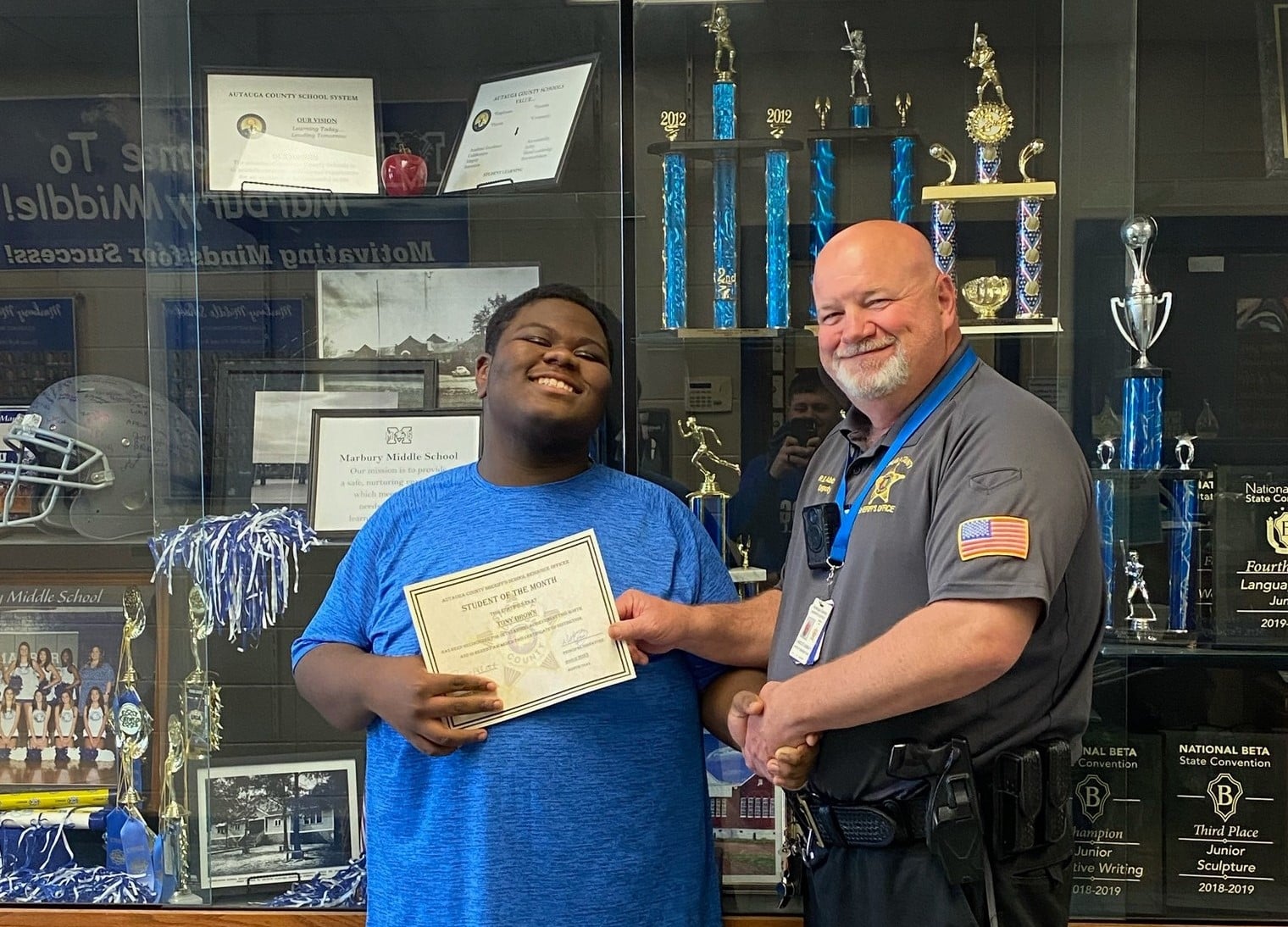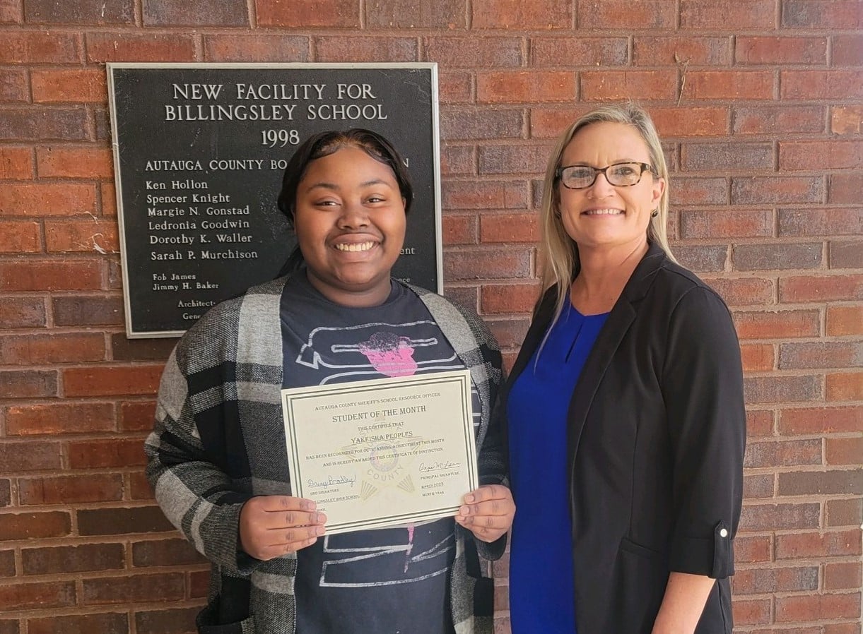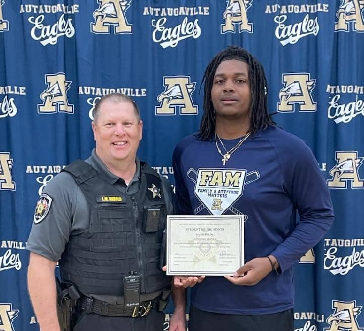 Top Photo: SRO Harold pictured with his Student of the Month from Autaugaville High School, Deontae Hester.