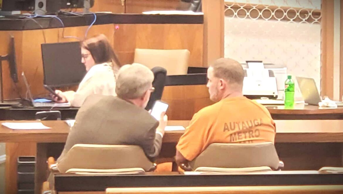 Top Photo: Jason Hudson speaks with his attorney Richard Lively before an Aniah’s Law hearing Monday in Autauga County.
