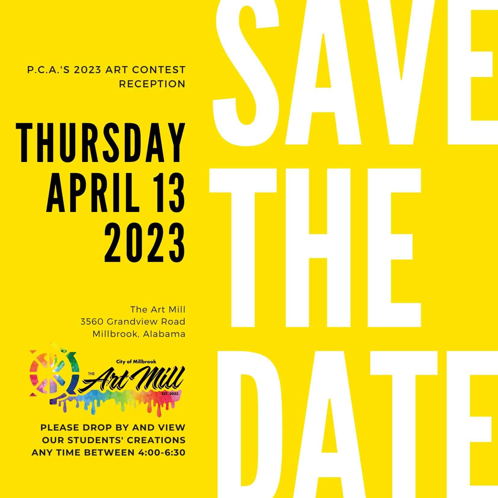 On April 13, Prattville Christian Academy’s 2023 Art Contest Reception will be held at the Art Mill. You are invited to drop by and view the students’ creations anytime between 4-6:30 p.m.