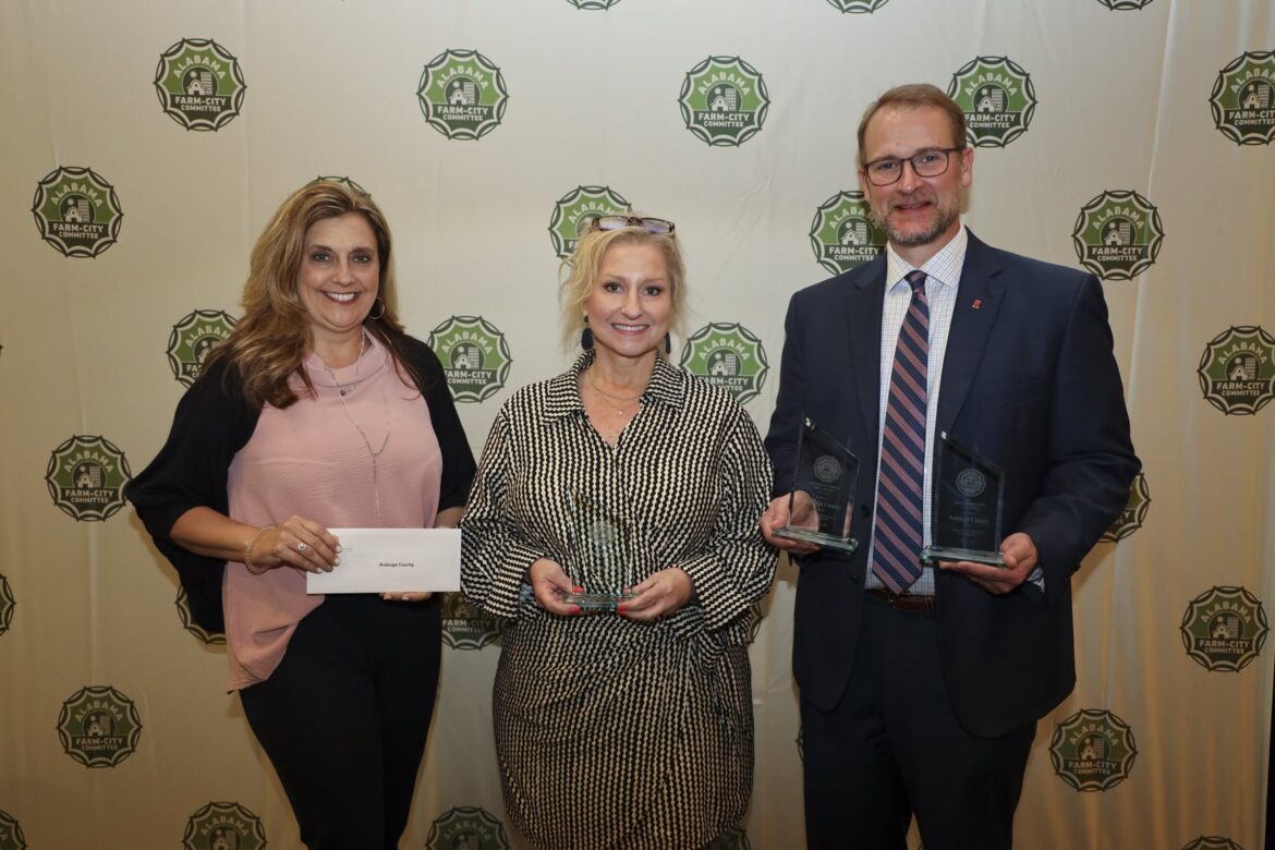 Top Photo: The Autauga County Farm-City Committee was named runner-up for Best Farm-City Committee for Division 1 during the Alabama Farm-City Awards Luncheon and Program April 13 in Birmingham. The county also earned Division 1 honors for Best Media Coverage & Proclamation and Best Farm-City Tour. For each recognition, the committee earned a cash award from Alabama Farm Credit. Division 1 is for counties with larger populations. From left are Alabama Farm Credit’s Wendy Tysinger, Darrue Sharpe and Alabama Farm-City Committee Chair Jeff Helms.