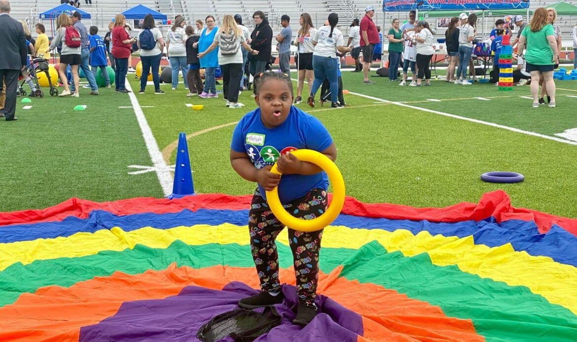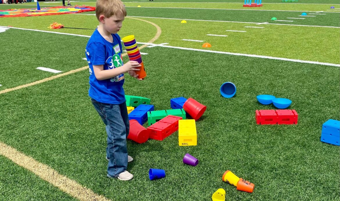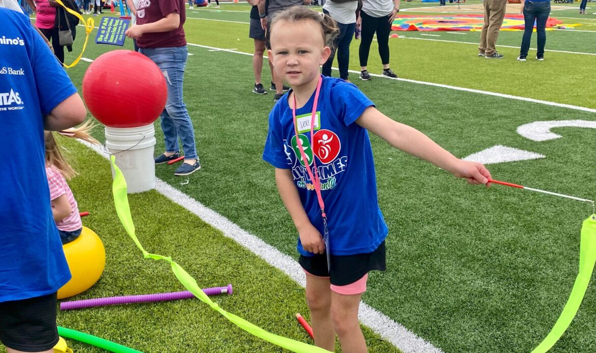 There were 18 different stations for the children to enjoy. They included parachute play, foot darts, ZIP IT, frisbee, fitness, wacky 5-N-1, football, corn hole, music time, pictures, sports arena combo, hoop mania, soft play, stacking, jumping/bouncing, seven-element course, big games, and launch it. Maurice Wood with Carousel Music provided music for the event.