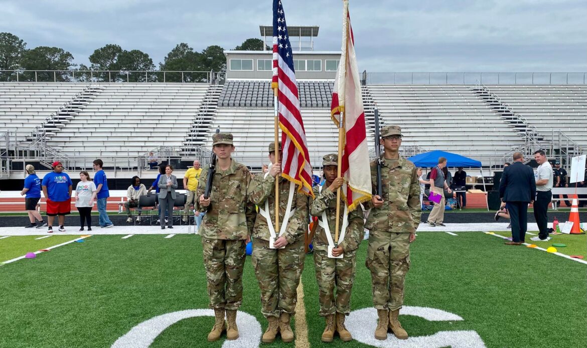 He continued, “We would like to take a moment and thank our sponsors who made this event happen. A huge thank you to Lifetouch and their reps Lindsey Stubblefield and Jonathan Wright for all of the photography for the event, tent banners, and student portfolios. We would also like to say a big thank you to the Mayor Jerry Willis and the Wetumpka Park and Rec for all their help and use of the Stadium for today’s event.
