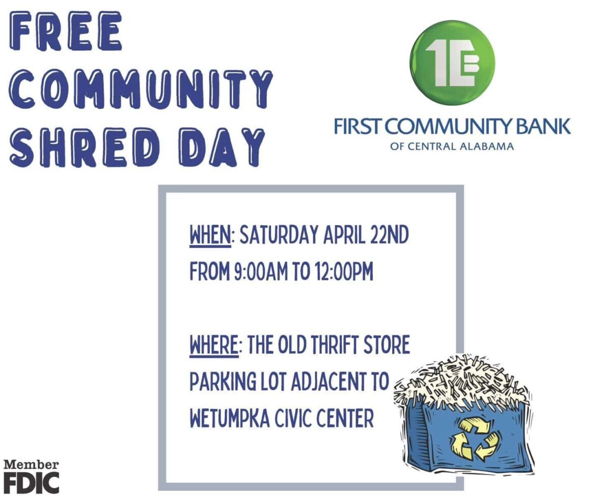 FREE Community Shred Day coming from First Community Bank in Wetumpka