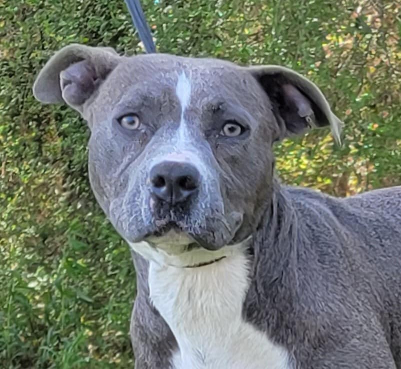 Diamond is a one-two year old female Pit mix, about 55 lbs.  This girl is a doll!  She is great with all dogs, male and female, cats and children and is housetrained.  She adores attention, loves to give hugs and cuddle.  Playful but happy to chill and get petted or brushed.