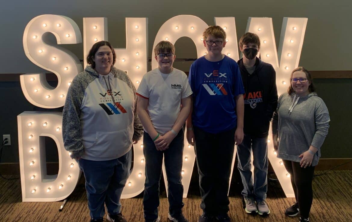 Taking over as the leader for a Robotics program in its infancy stages has been both rewarding and challenging. Students on the Robotics team are responsible for building, coding, and driving the robots. Licina explains that there are three different types of Mustang teams. “Currently, there are 21 students in the competition club. Those 21 students make up eight individual teams. We have three divisions of teams. We have some elementary teams, middle school teams, and a middle school VRC teams.”