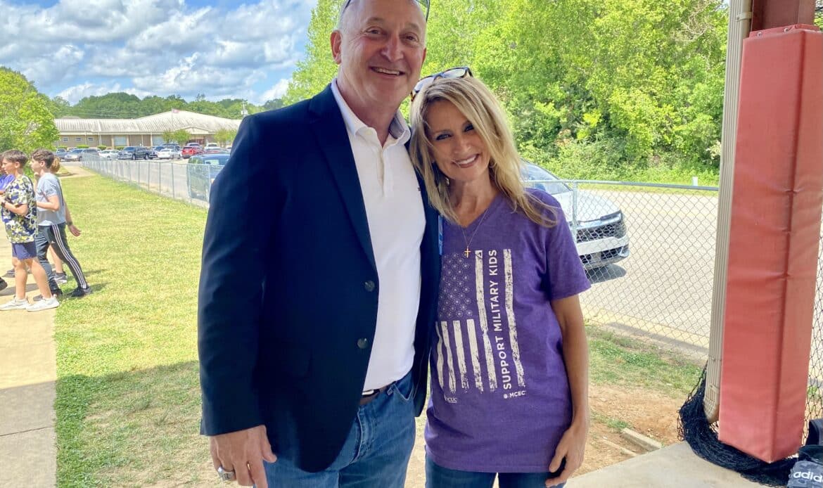 On Friday Millbrook Middle School hosted their inaugural Purple Star Picnic event for their military students and their families. Over 60 guests were in attendance. Millbrook Middle was recently recognized as one of the Purple Star schools. The picnic included sandwiches, chips, cookies, and drinks. Special guests included Superintendent Richard Dennis, and School liaison program managers Katheryn Ganster and Robert Richert; Rachel Surles, Community Coordinator from the Military Child Education Coalition; Christine Flynn, Military and Family Life Counselor; Ayena Jackson, Middle School Director;  and Shay Jackson, Senior Coordinator of Secondary Curriculum Military Liaison for ECPS. Families had lunch, played games on the law with their children and spent time visiting.